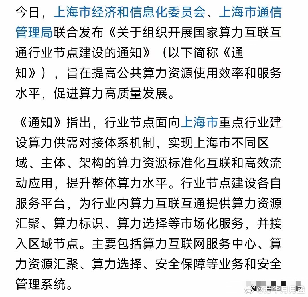 周末,算力大利好来了!上海发布开展算力互联互通的通知,就是统一纳入行业节点平台,细分就是算力枢纽+资源池+调度器+安全盾,实现行业内算力统一接入、统一标识、统一调度、统一安全。