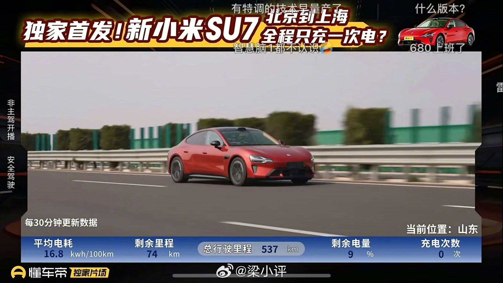 新一代小米SU7 Pro测试,“北京到上海,中间只充一次电”