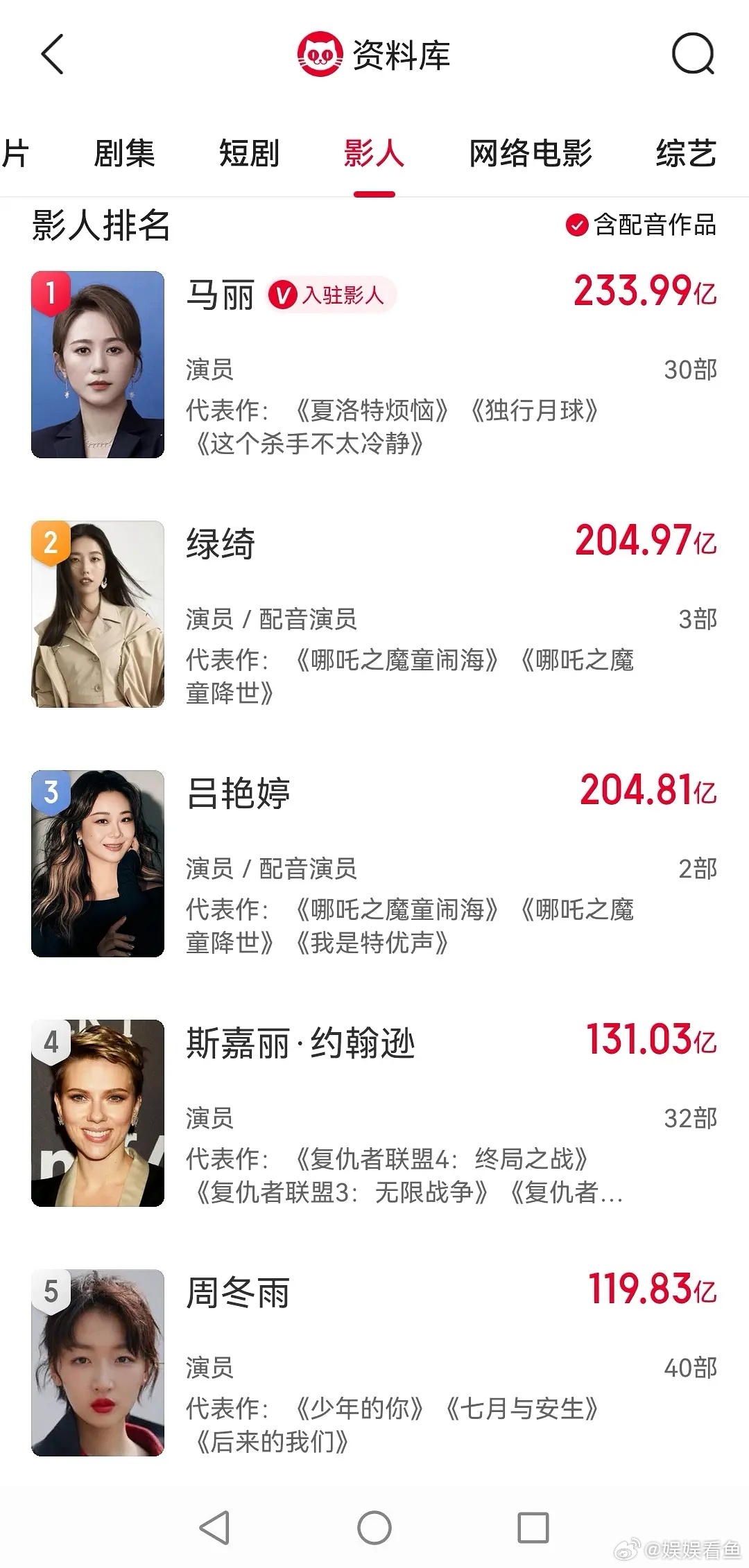 内娱热度很高的五位女明星你猜有谁赵丽颖(国民度天花板)中式温婉长相,古装/现实剧