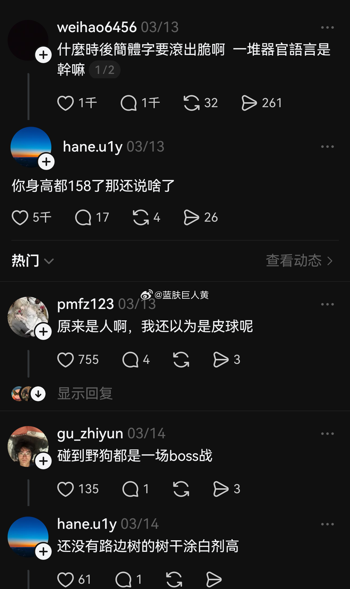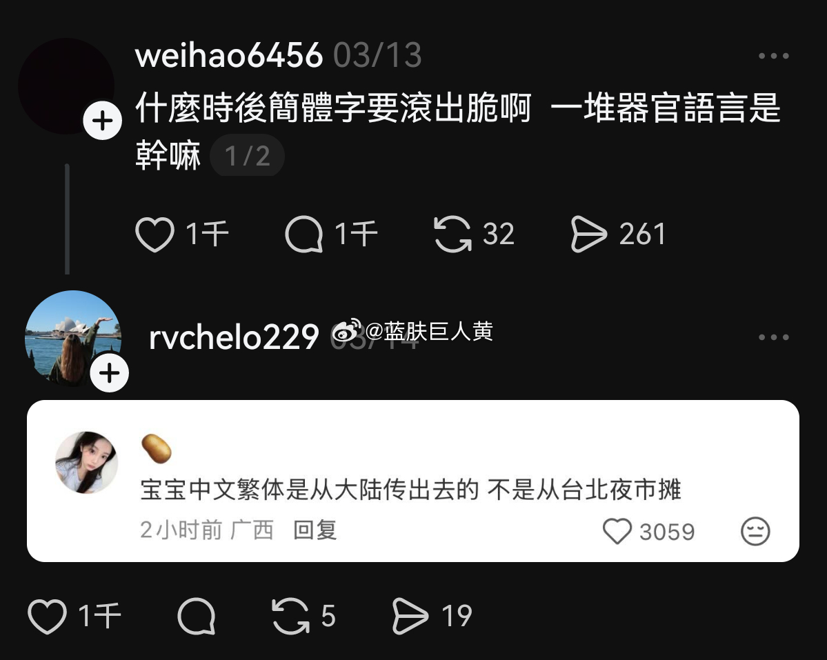 身高1米58的台湾省高三男生在某软件上喊话“简体字滚出去”,成功成为了大陆网友的新电子宠物——