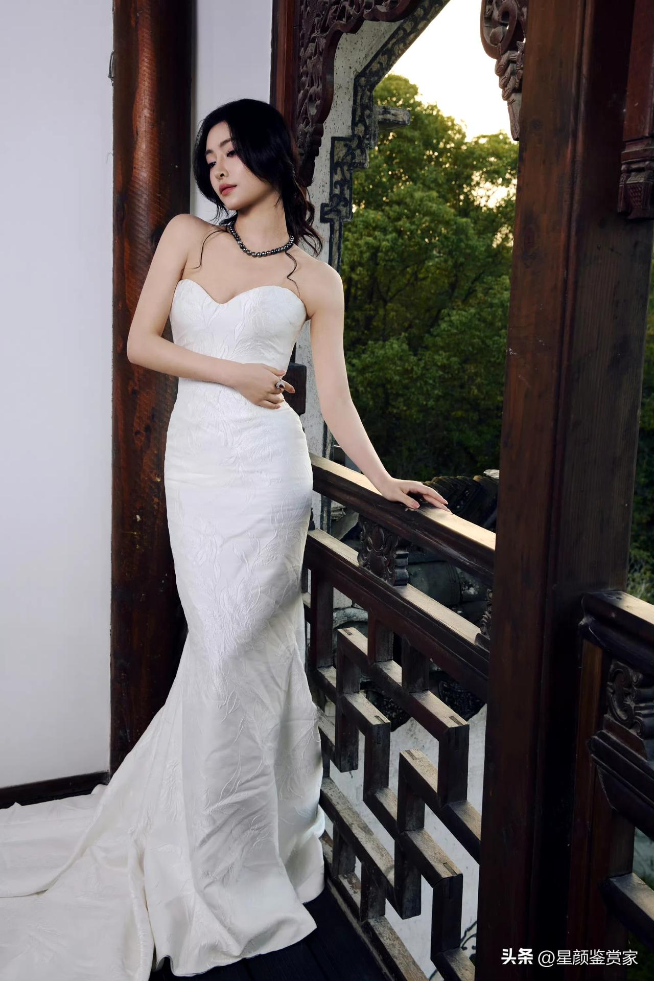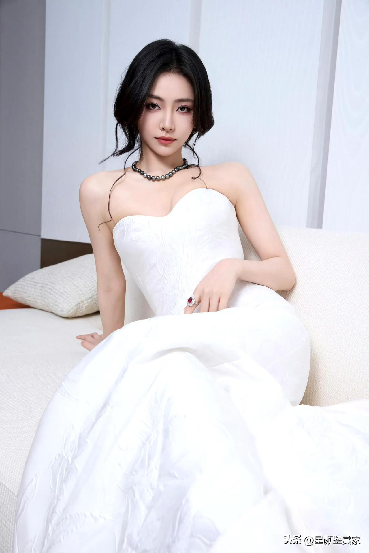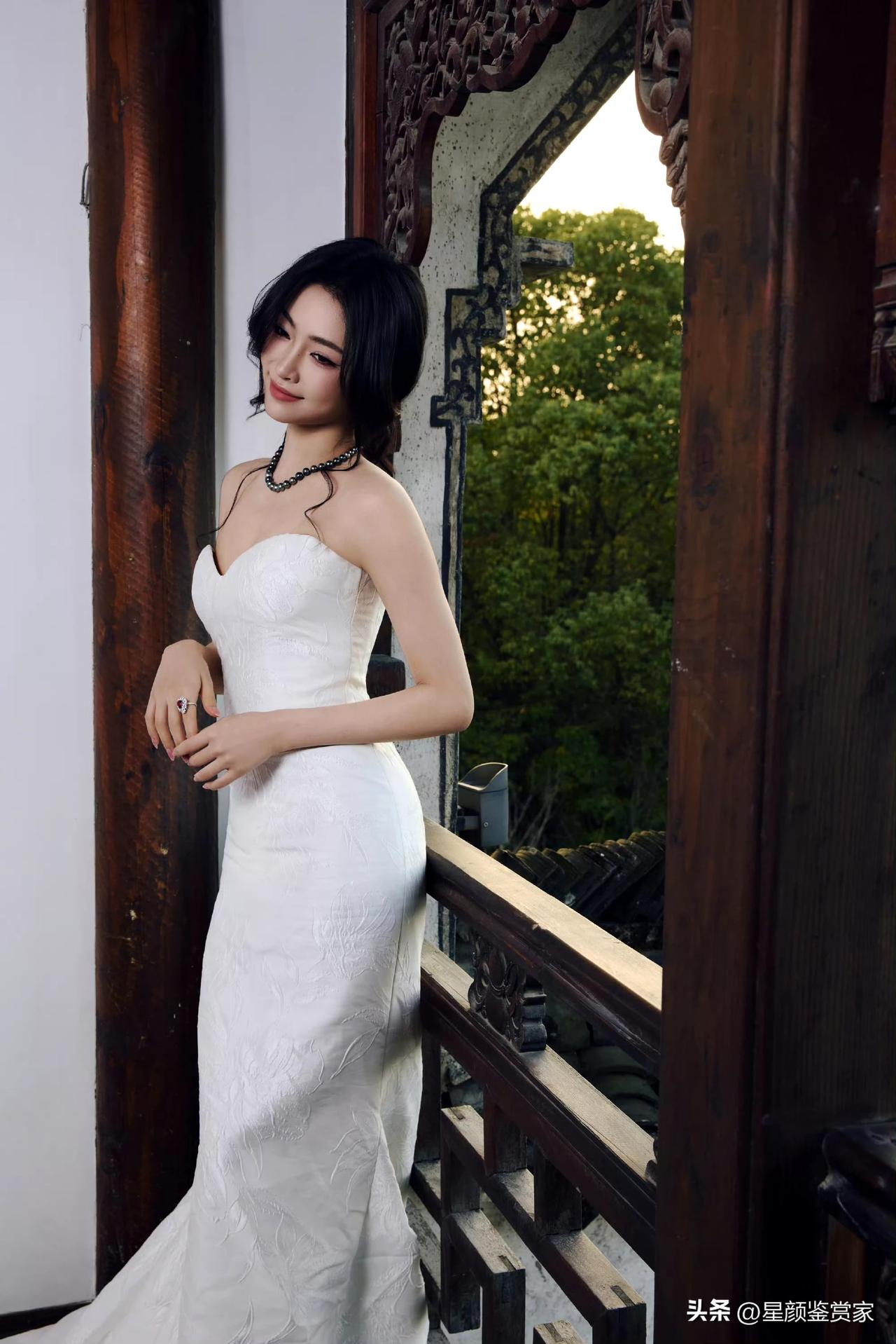 许佳琪壁纸~ 白色礼裙特别显魅力,每一处线条都透着优雅和性感的交融。