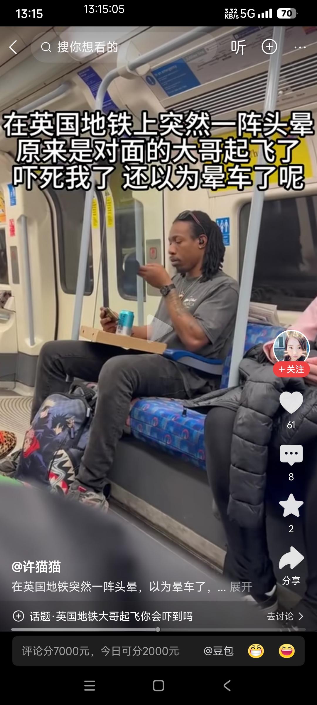 华人在英国坐地铁时突然一阵头晕,不是自己身体出了问题。 而是对面有一个乘客在封闭的车厢里抽大麻,污染了整个车厢导致了。 这是华人拍的现场照片。 这个抽大麻英国人没有一点公德心,在车厢里旁若无人的抽大麻。 没人上去阻止他,也没有车组人员过来制止,他就坐在那里吞云吐雾一脸“享受”。 在英国持有、吸食、种植、售卖、分发、运输大麻都是违法行为。 但这个抽大麻的英国人对英国法律视而不见,毫无顾忌。老神在在的一边抽大麻喝啤酒玩手机。