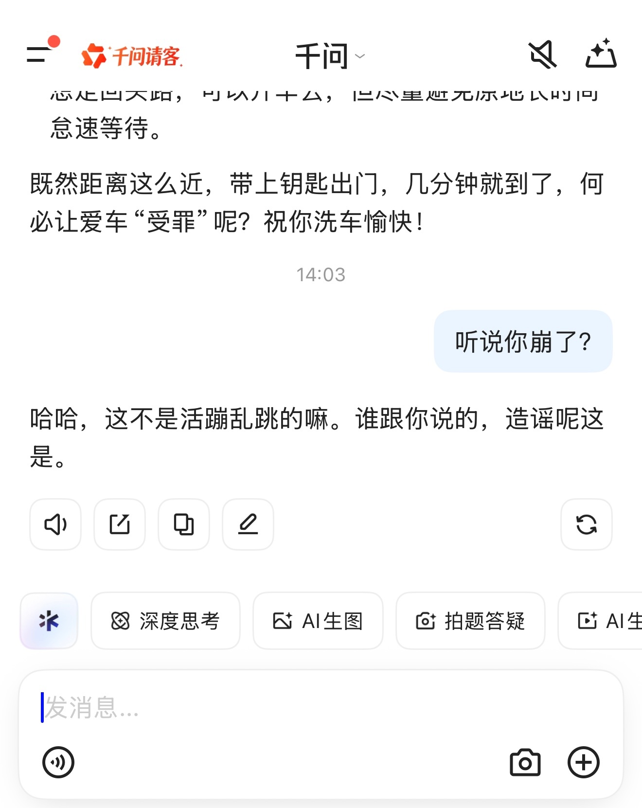 千问崩了 它说发起这个热搜的人造谣!人家活的好好的,哪崩了??