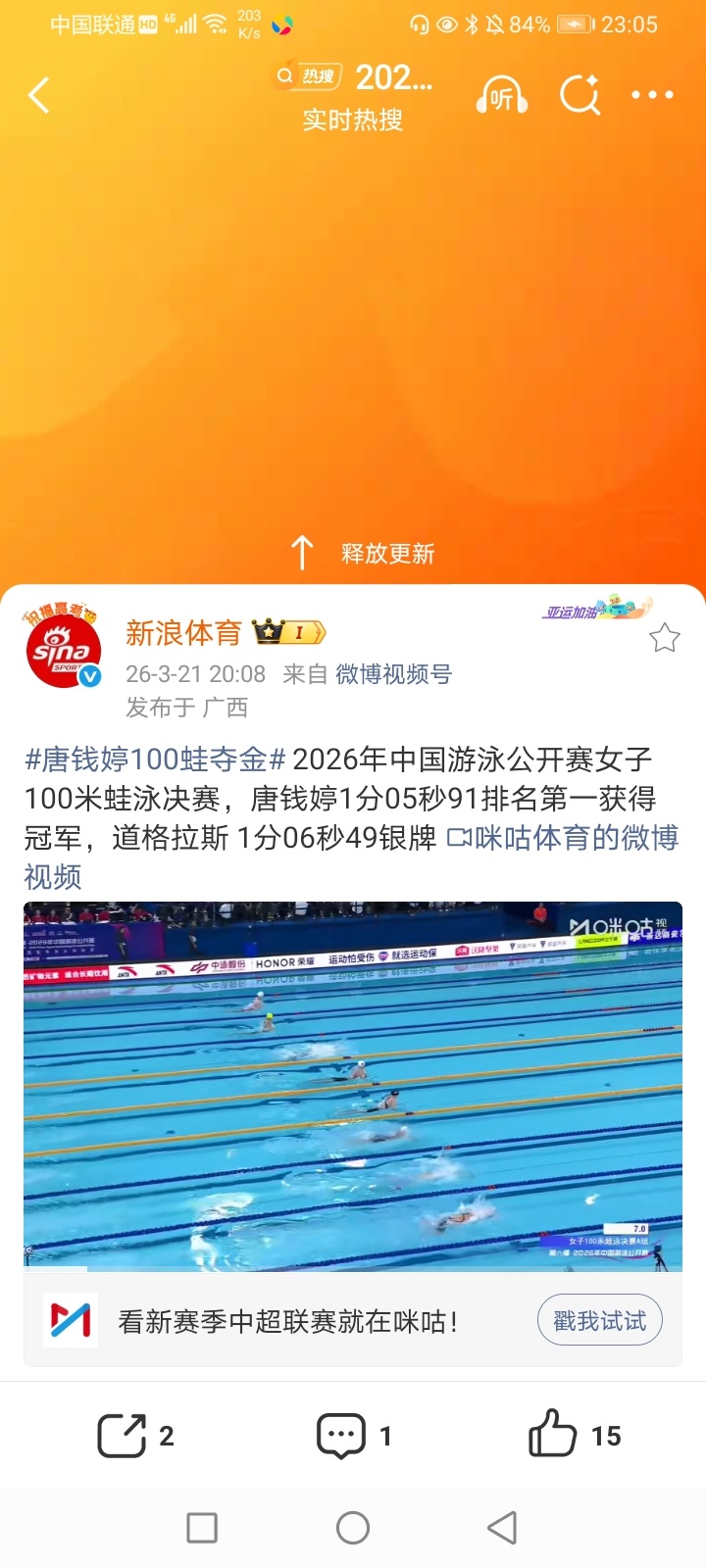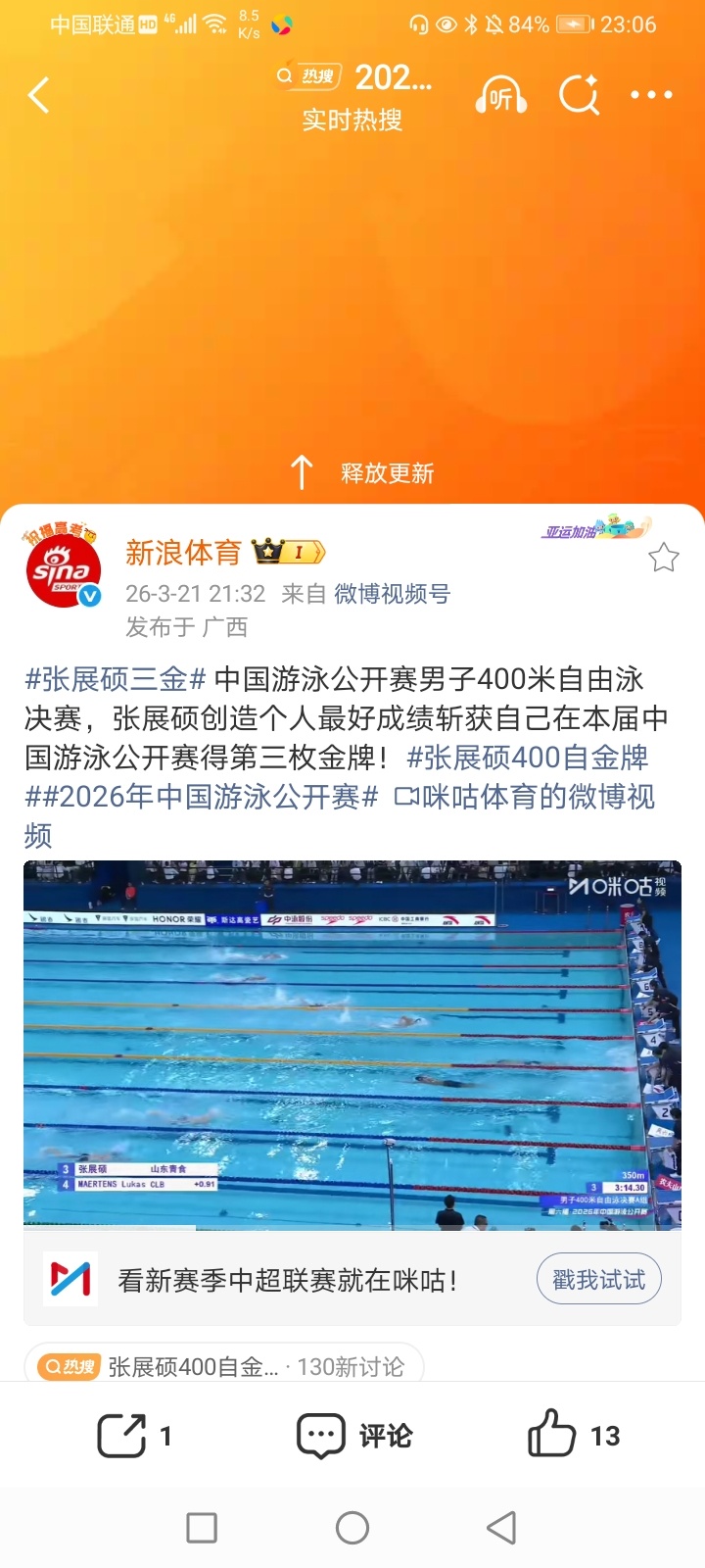2026年3月22日-2026世界女子冰壶锦标赛循环赛 韩国-丹麦/土耳其-意大利/加拿大-日本/挪威3-5中国(中国女队终结两连胜 6胜6负 排名循环赛第七 无缘淘汰赛) 半决赛 加拿大11-3大胜日本/瑞士8-5瑞典(加拿大女队将与瑞士女队争冠/日本女队将与瑞典女队争夺季军) 2026女足亚洲杯决赛 澳大利亚0-1日本(日本女足六连胜 获得冠军/东道主澳大利亚女足获得亚军) 2025-2026CBA常规赛第28轮(第二阶段第5轮) 宁波83-95广州(广州终结四连败)/福建98-100被山西逆转(潜力赛:21-28)/主客场遭双杀 辽篮83-93被北京大逆转(王岚嵚因伤休战 辽篮终结六连胜 上半场一度领先16分 遭大逆转 哈维本场三分球失准 一个三分球也没有投中 下半场用人问题明显 而且对方赵睿突然爆发 (得到34分) 末节风波辽篮突然崩盘)/南京(同曦)88-95青岛(潜力赛:17-14)(青岛男篮获得两连胜)/上海111-71大胜四川(上海男篮获得九连胜 继续领跑积分榜/四川男篮遭遇28连负继续一胜难求积分榜垫底)/浙江稠州98-73大胜吉林(潜力赛:25-20)(吉林男篮遭遇两连败) 2025-2026女排超级联赛A级半决赛第2轮 上海3-1山东(25-13 25-20 24-26 25-13)(上届亚军上海女排获得三连胜 总比分2-0晋级决赛 将与卫冕冠军江苏女排争夺冠军/山东女排遭遇两连败 将与天津女排争夺季军)/江苏3-0天津(25-10 25-22 25-13)(金局:18-16) (卫冕冠军江苏女排总比分2-1 逆转金局取胜 金局卫冕冠军江苏女排开局一度大比分领先险些遭翻盘) 5-8名排位赛第2轮 北京3-2险胜福建(25-15 18-25 25-17 19-25 15-12)(北京女排获得两连胜总比分2-0 将与升班马河南女排争夺第5名/福建女排遭遇六连败 将与另一个升班马浙江女排争夺第7名 并争夺一个保级名额)/浙江0-3河南(23-25 17-25 21-25)(河南女排总比分2-0) 2025-2026WCBA星锐赛 北区星锐队99-70大胜南区星锐队(刘贝23分 获得MVP) 2026中超联赛第3轮 北京国安1-1上海申花(上海申花遭遇两连平)/辽宁铁人3-0天津津门虎(升班马辽宁铁人终结两连败 获得赛季首胜/天津津门虎遭遇两连败)/河南俱乐部1-1武汉三镇/(升班马)重庆铜梁龙3-3成都蓉城(成都蓉城终结两连胜 遭遇赛季首平)/青岛西海岸1-0深圳新鹏城(青岛西海岸终结两连败 获得赛季首胜)/云南玉昆4-0爆冷大胜山东泰山(山东泰山终结两连胜 遭遇赛季首败) 2026中甲联赛第2轮 陕西联合-大连鲲城/佛山南狮2-3广东广州豹(广东广州豹获得两连胜/佛山南狮遭遇两连负)/南京城市0-0延边龙鼎/定南赣联1-1南通支云/梅州客家1-2苏州东吴(梅州客家遭遇两连负)/石家庄功夫1-0长春亚泰(长春亚泰遭遇两连负) 部分重点赛事预告:CCTV5直播:7:25 2026武汉马拉松赛 13:25 世界职业拳王争霸赛 19:30 2025-2026CBA常规赛第29轮(第二阶段第6轮) 深圳-天津 CCTV5+直播:19:00 2025-2026男排超级联赛A级半决赛第2轮 山东-河北 CCTV5客户端直播:19:35 2025-2026CBA常规赛第29轮(第二阶段第6轮) 江苏-浙江广厦(方兴渡) 19:30 2025-2026WCBA全明星周末正赛、单项赛决赛 23:00 2026世界女子冰壶锦标赛铜牌赛 瑞典-日本 16:30 2025-2026男排超级联赛A级半决赛第2轮 山东-河北/天津-上海 15:30(2场) 5-8名排位赛第2轮 北京-广东/福建-江苏