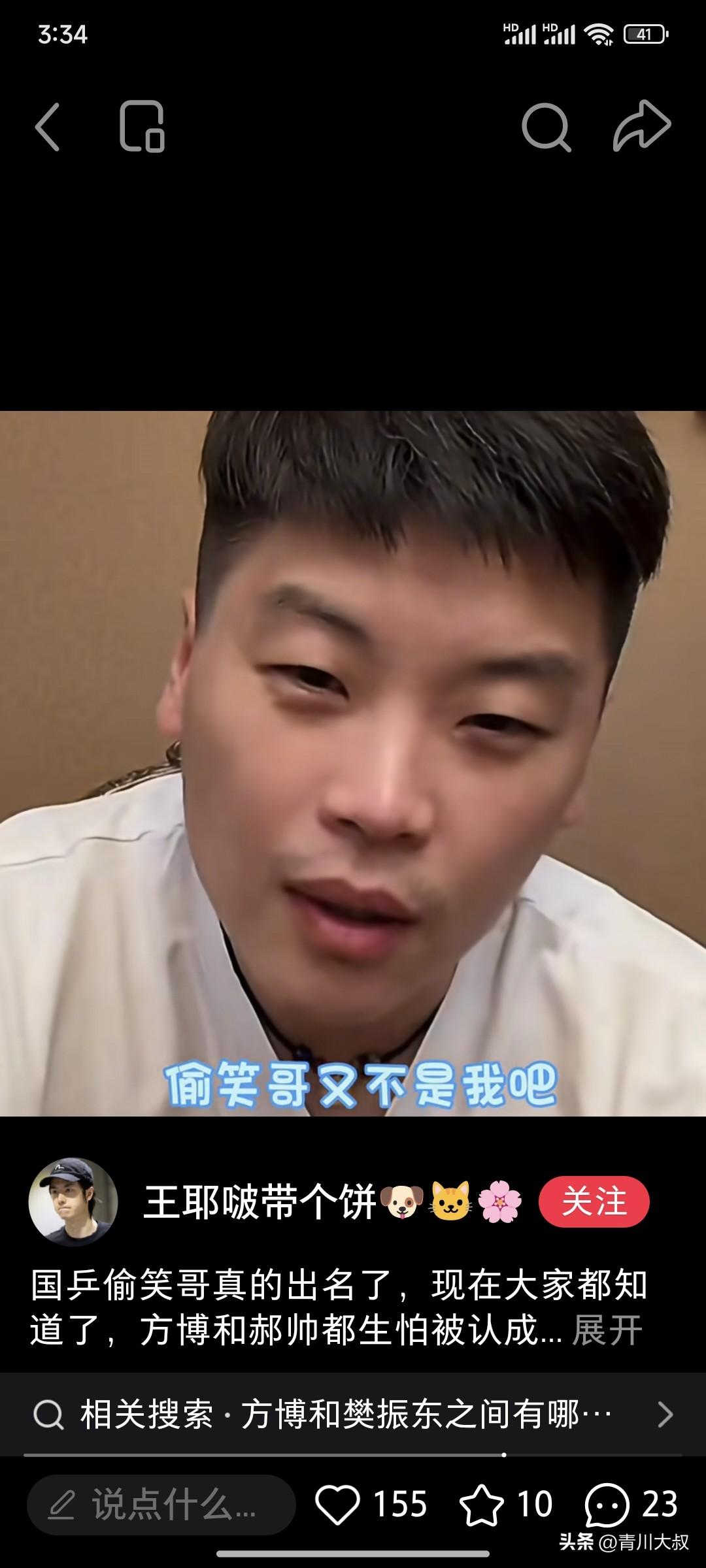 笑死我了!一夜之间,偷笑哥火了! 方博被网友误认为偷笑哥, 他立马澄清! 他说: 兄弟,你认错人了吧, 不管有啥风吹草动的, 都算在我头上! 我是能扛事, 但是也不能无缘无故背黑锅! 有网友把郝帅也误认为偷笑哥, 郝帅也立马反驳道: 偷笑哥是谁? 可不是我! 问题来了, 偷笑哥到底是谁? 怎么这么火?