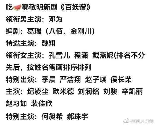 《百妖谱》传到邓为和孔雪儿了!《百妖谱》是郭敬明的戏,此前郭敬明法国邓为眼部特写,被认为这部剧定了邓为,之前传赵露思邓为出演,也穿过邓为艾米等,《百妖谱》原著是大女主剧,如果先定邓为,不会又要改成大男主剧吧,邓为女改男的《风月不相关》到现在还没动静,不过郭敬明这几年拍的剧好的女主还都挺当红的,都是虞书欣,鞠婧祎,陈都灵这种咖位的。