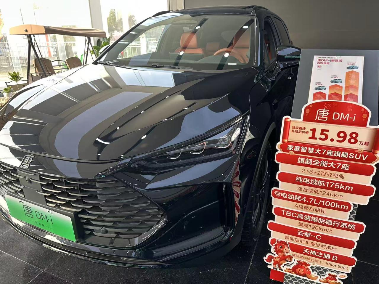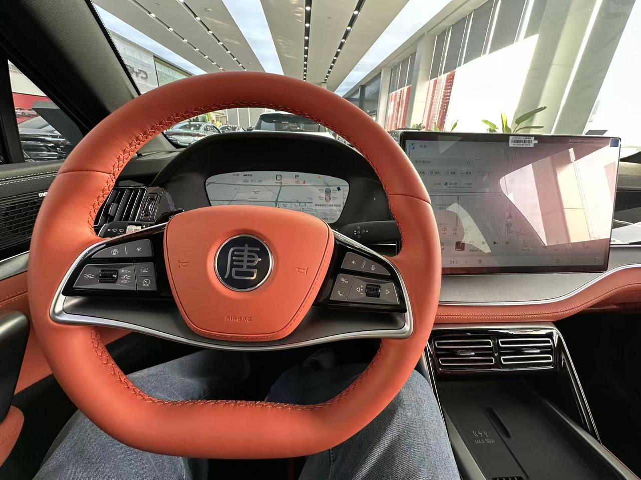 老家亲戚最近打算换车,看的是比亚迪的唐DM-i,趁着周末来看看,说说我的感受。 这车的外观倒是蛮大气的,看起来有点凶。 坐进车里的时候,他的驾驶位会向后移动,好像是在欢迎我上车,坐进来又会根据我的身高来调节座椅。橙色内饰看起来挺活跃的,这款车还配备了丹拿音响,我试听了一下,低音倒是挺浑厚的。 后排空间倒是蛮大的,1米78的身高,坐后面差不多有将近三拳的腿部空间。不过这车是一个7座的布局,如果说后面坐人,第二排座椅必然要向前调节,空间就会有所变化。说真的,第三排空间实在一般,看着还行,实际坐着真没有多大。 三排座椅使用的情况下,后备箱空间就没有多少了,顶多放两个行李箱。如果为了7座买这台车,我觉得不如看看mpv,起码坐着舒服,空间更大。 比亚迪唐DM-i这车家用倒是蛮合适的,外观够大气,内部看着不廉价。但是就像我所说的,不要为了7座去买这台车,尤其是第三排,需要经常使用,短时间乘坐还行,长时间乘坐真的很难受。【来自懂车帝车友圈】