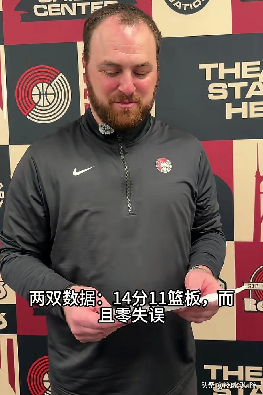 发自内心的开心,听听杨瀚森发展联盟主教练怎么说! 开拓者发展加盟混音队今日赢了比赛,杨瀚森高效拿到14分11板,而且0失误! 赛后主教练发自内心的高兴并且夸赞杨瀚森,他表示,杨瀚森今天非常棒,拿到两双而且没有失误,我们对他非常严苛,他总是虚心请教。 从这位教练的口中和表情能看出对杨瀚森今天的表现,以及一系列的表现都非常认可,确实,杨瀚森在发展联盟打的确实好!