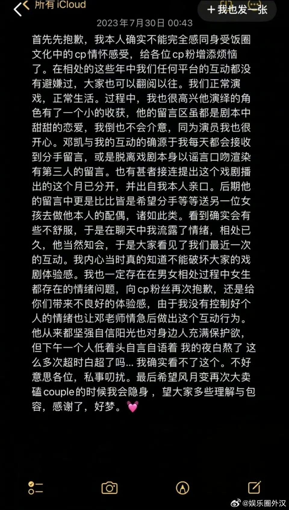 谁能想到,邓凯藏了四年的前女友,竟是当年硬刚王思聪、演过《总裁在上》的朱圣祎!两人2021年因戏相恋,一路低调甜蜜。2023年邓凯靠CP走红,朱圣祎被CP粉围攻,邓凯当场下场护女友,闹到双方公开道歉。2025年女方直播官宣单身,看似已分手,可不少网友嗑细节,怀疑他俩悄悄转地下了,这瓜真的越扒越有戏!