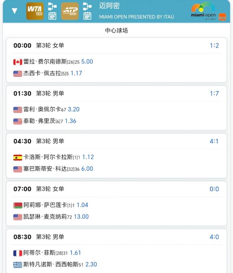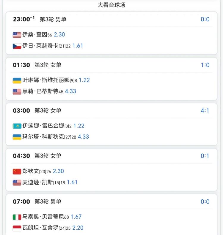 3月23日迈阿密赛程!! 郑钦文与凯斯这场是必看的!!佩古拉、莱巴金娜、萨巴伦卡、保利尼、阿尔卡拉斯、弗里茨等大种子也都将出战单打第三轮!!莱巴金娜vs科斯秋克这场,很想很想看,但这时间点太不友好了、昨天晚上已经熬了一晚上了,今晚打算不熬了,5点半早起即可[害羞]、这么多场比赛,除了郑钦文的,你还想看哪一场比赛呢?朱婷