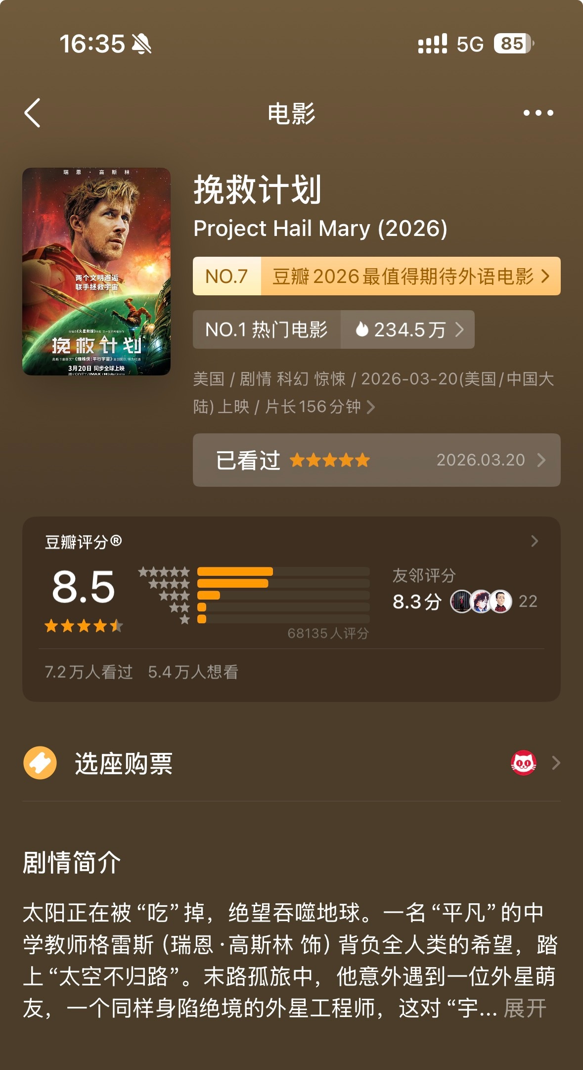 电影挽救计划豆瓣开分8.5,近期最夯👎👎