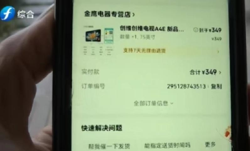 349元买75寸电视,商家说标错价不发货,刘女士到底该不该拿这单? 杭州刘女士