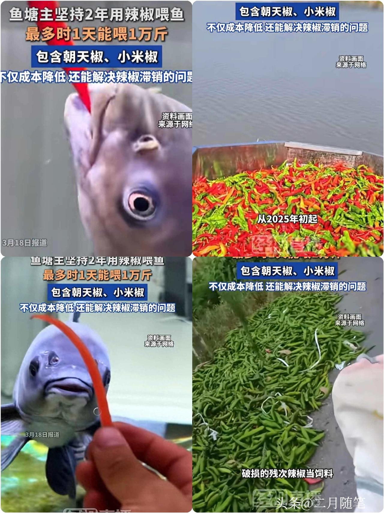 湖南男子 坚持用辣椒喂鱼,包含朝天椒、小米椒,最多1天能喂1万斤! 男子:鱼吃了后肉口感更好! 这湖南大哥养鱼,真是脑洞大开! 别人喂饲料,他直接拿辣椒当鱼食。 每个月往鱼塘里倒十几吨辣椒, 红的黄的,哗啦啦全撒进水里。 你敢信吗? 鱼吃着吃着,鱼鳞竟然变成金灿灿的, 老远一看全是“黄金鱼”,围观的人都看傻了。 大哥把账算得明明白白:辣椒便宜, 比买正规饲料省太多钱,还顺便帮老乡解决了辣椒滞销的问题,一举两得。 有专家担心辣椒刺激鱼、坏水质, 可人家塘里的鱼活蹦乱跳,鳞片亮得晃眼, 一点事也没有。 现在这黄金鱼在网上火了,抢着买,销路特别好。 饲料厂那套规矩、专家的建议, 他一概不管,就信自己这土办法: 省钱、实在、还能赚钱。 说实话, 这办法看着粗糙,却藏着咱普通人的实在智慧。 日子不好过,就盯着身边能用的东西, 就地取材,硬生生闯出一条挣钱路。 管他什么专家理论,能实实在在的赚钱、 把日子过好,就是最好的办法! 湖南养鱼奇招辣椒喂出黄金鱼农民养鱼智慧接地气致富路子土办法真管用辣椒健康益处 吃辣椒的鱼 辣椒养鱼