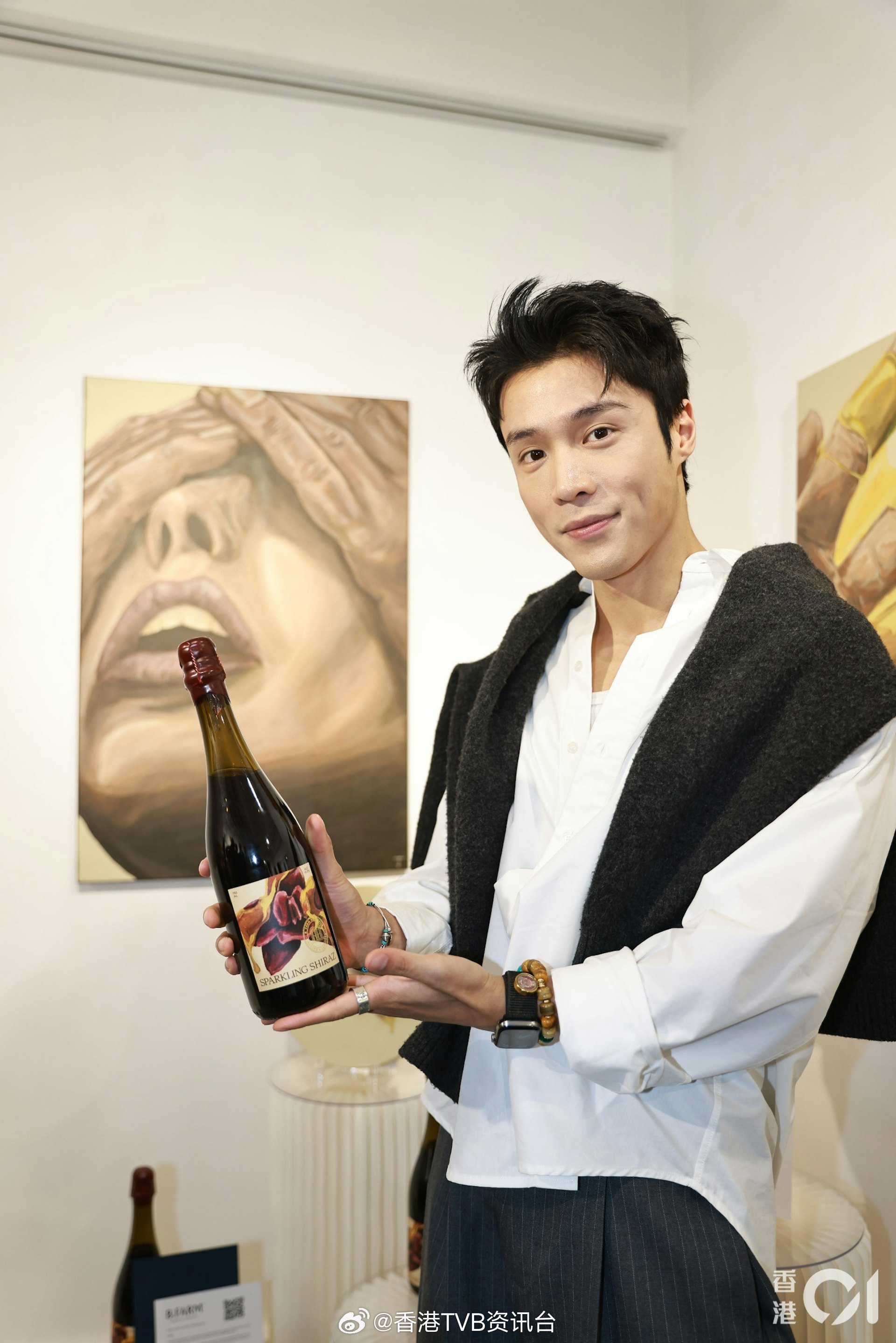 TVB新一代男神丁子朗近年在演艺事业发展顺利,私下也极具艺术细胞,早前曾举办个人画展,去年又与酒店合作推出新年礼盒,今年更进一步跨界酒界,与澳洲方面联名推出自家红酒,由他亲自设计包装的气泡红酒正式面世。