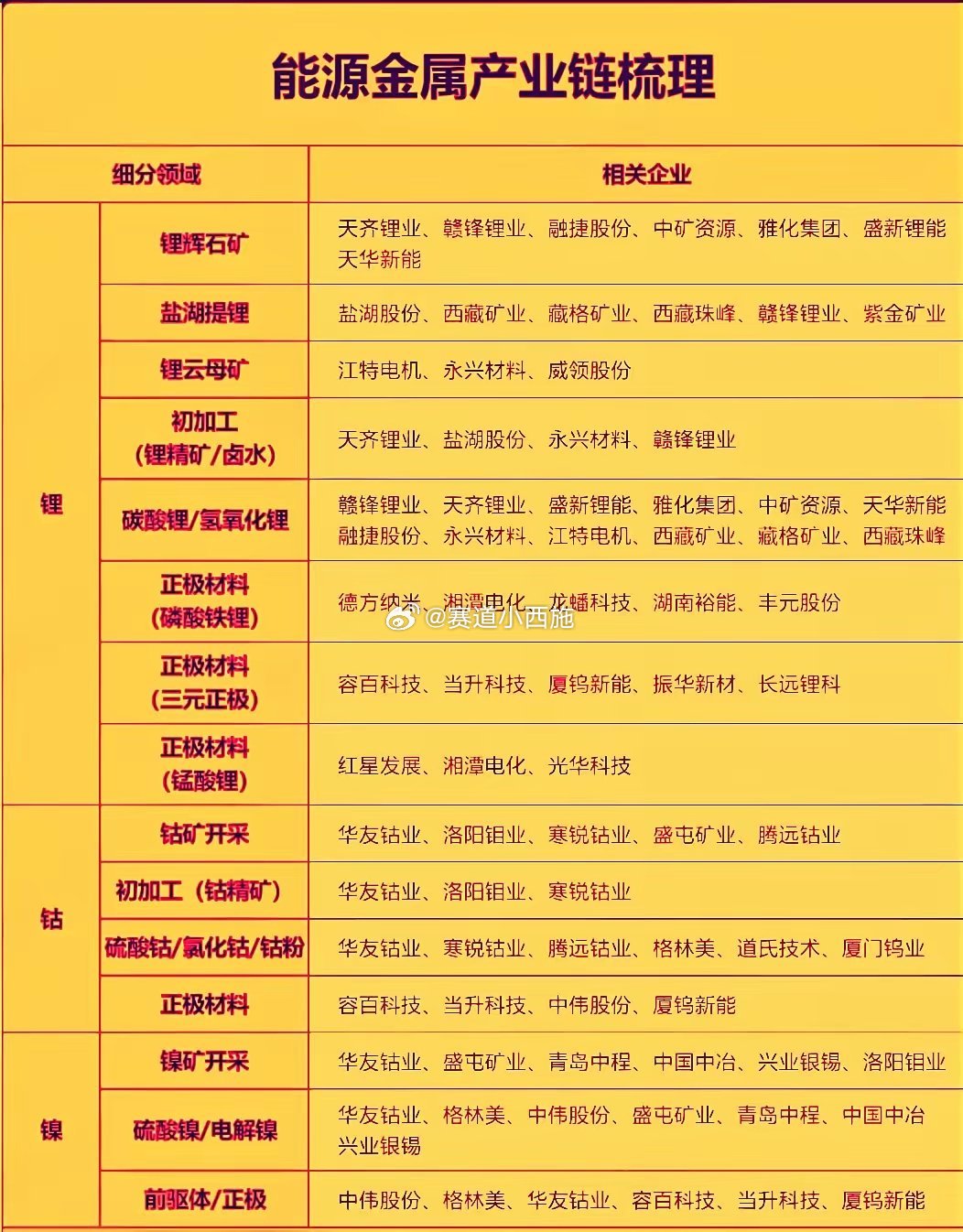 受美联储降息预期收敛、宏观情绪偏谨慎影响,能源金属短期面临市场承压,但中长期增长逻辑依然稳固。在“双碳”目标与新质生产力政策持续推进下,绿色能源转型加速,新能源汽车、储能、AI算力基础设施等领域,将长期拉动能源金属需求。AI算力带动电力需求大幅提升,间接推高铜、铝等工业金属用量,形成“算力—电力—金属”的正向循环。需求端呈现结构性增长,新能源领域已成为锂、钴消费的核心引擎。投资方向上,建议优先关注资源自主可控、产业链一体化、技术壁垒突出的优质企业,重点关注相关交易性机会:- 天齐锂业:全球锂资源龙头,掌控核心锂矿资源,为新能源电池供应核心锂原料,稳居产业链上游核心地位;- 赣锋锂业:全球锂资源布局最广、产业链完整性领先,锂盐产能位列全球第一梯队,高端产品市占率高,抗周期能力突出;- 华友钴业:全球钴镍双龙头,实现钴镍资源开采与冶炼全产业链布局。风险提示:以上内容基于公开资料整理,仅为行业与逻辑分析,不构成任何投资建议。市场有风险,投资需谨慎。