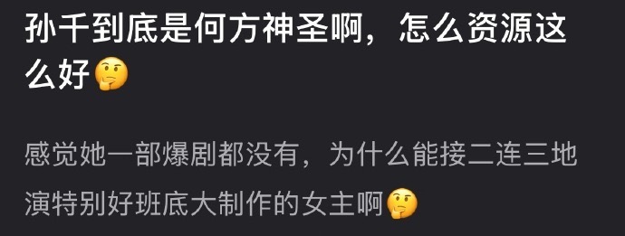 孙千一部爆剧都没有,为什么还可以接二连三地演特别好班底大制作的女主?
