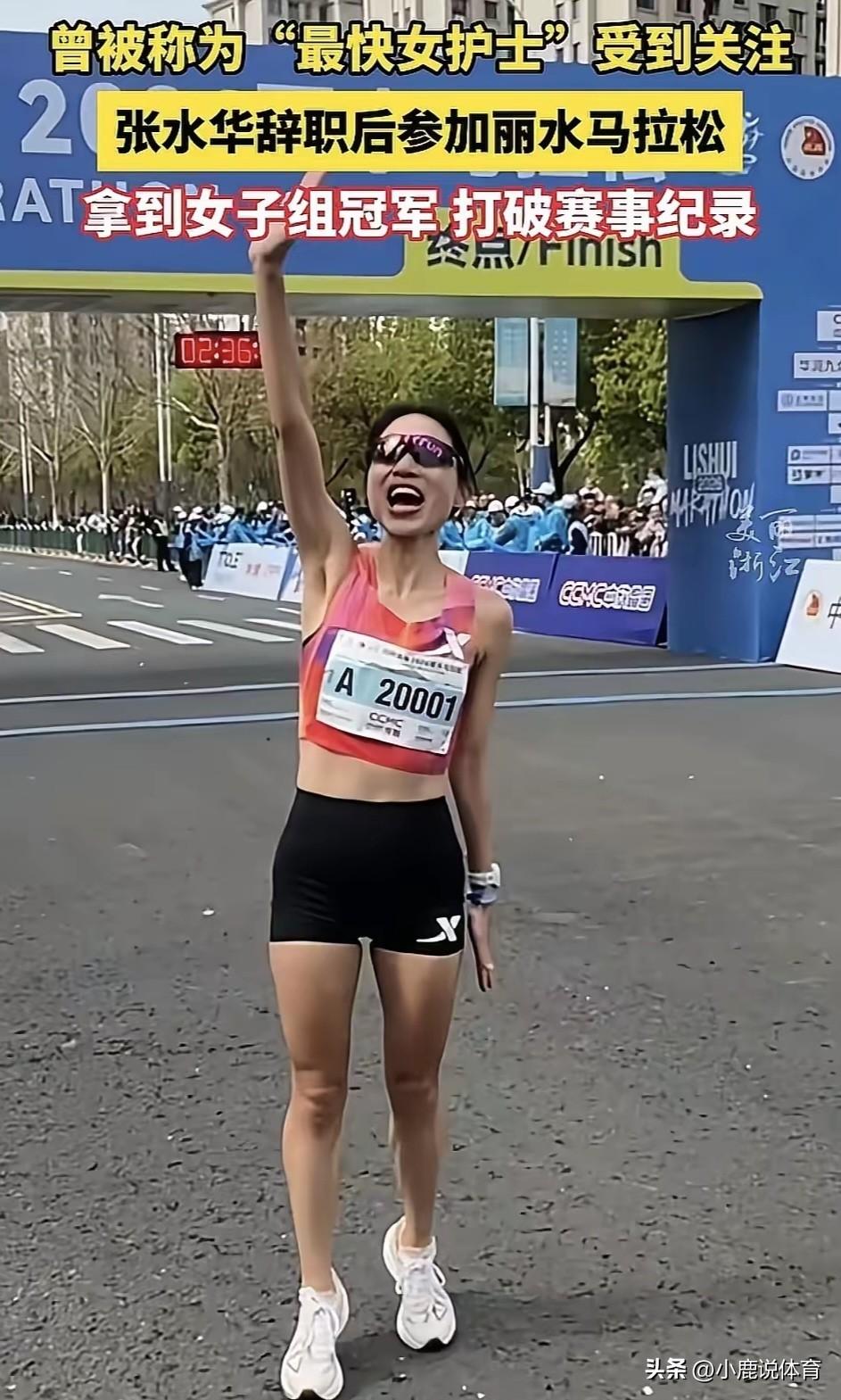 张水华这次真杀疯了! 丽水马拉松刚冲线。 冠军直接被她拿下。 2小时35分48秒。 只差2秒破236。 硬是把纪录刷新。 上次还在拿亚军。 这次直接登顶。 对手没来。 机会被她抓死。 不上班只跑马。 一边热爱一边赚奖金。 多少人羡慕这种活法。 普通人照样能出头。 不靠炒作不靠流量。 全靠自己硬跑出来。 一出场关注度拉满。 这次她是真赢麻了。 你更佩服她敢辞职追梦, 还是靠实力拿冠军?