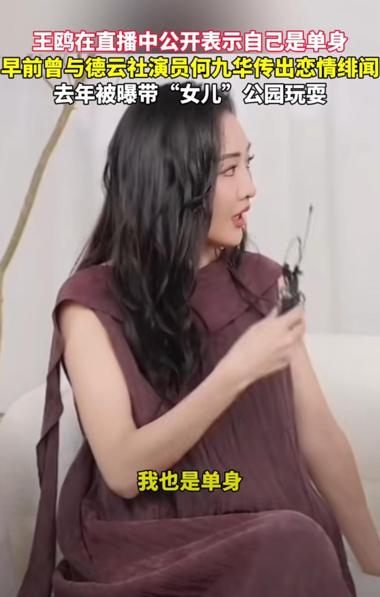 王鸥昨天突然宣布说自己单身,越想越有意思。 王鸥和何九华谈了好几年,网上讨论也很多,也被媒体拍到过两个人一起,还有孩子。这是毋庸置疑的事实! 现在王鸥突然说是自己是单身,到底什么情况?以前刚爆出两个人在一起时,网上很多人说何九华是渣男,现在看来,但是王鸥应该也不是傻白甜。我总觉得,这根本不是什么情情爱爱的结束,而像是一场早就该来的利益解绑。 这段关系从一开始就挺明显的,一个是一线女演员,一个是德云社的相声演员,流量、圈子、地位本来就不在一条线上。之前被拍了那么多次,同框、互动、甚至被传同居,俩人却从来没正式公开过,其实就已经说明问题了。 说白了,就是各取所需罢了。 男方需要热度、需要话题、需要曝光,女方需要一点生活化的绯闻维持讨论度,两个人心照不宣,低调相处,互不打扰。 可这两年不一样了,王鸥事业一路往上走,戏一部接一部,状态越来越好,她早就不需要靠一段不对等的感情来维持热度了。而这段关系,反而慢慢变成了拖累。 所以现在一句“单身”,轻轻巧巧把关系撇清,不撕不闹,不拉扯,也不解释。 成年人的世界哪有那么多真爱啊,大多都是价值匹配。 匹配的时候就在一起,不匹配了就体面散场。 王鸥这一步,真的太清醒,也太现实了。