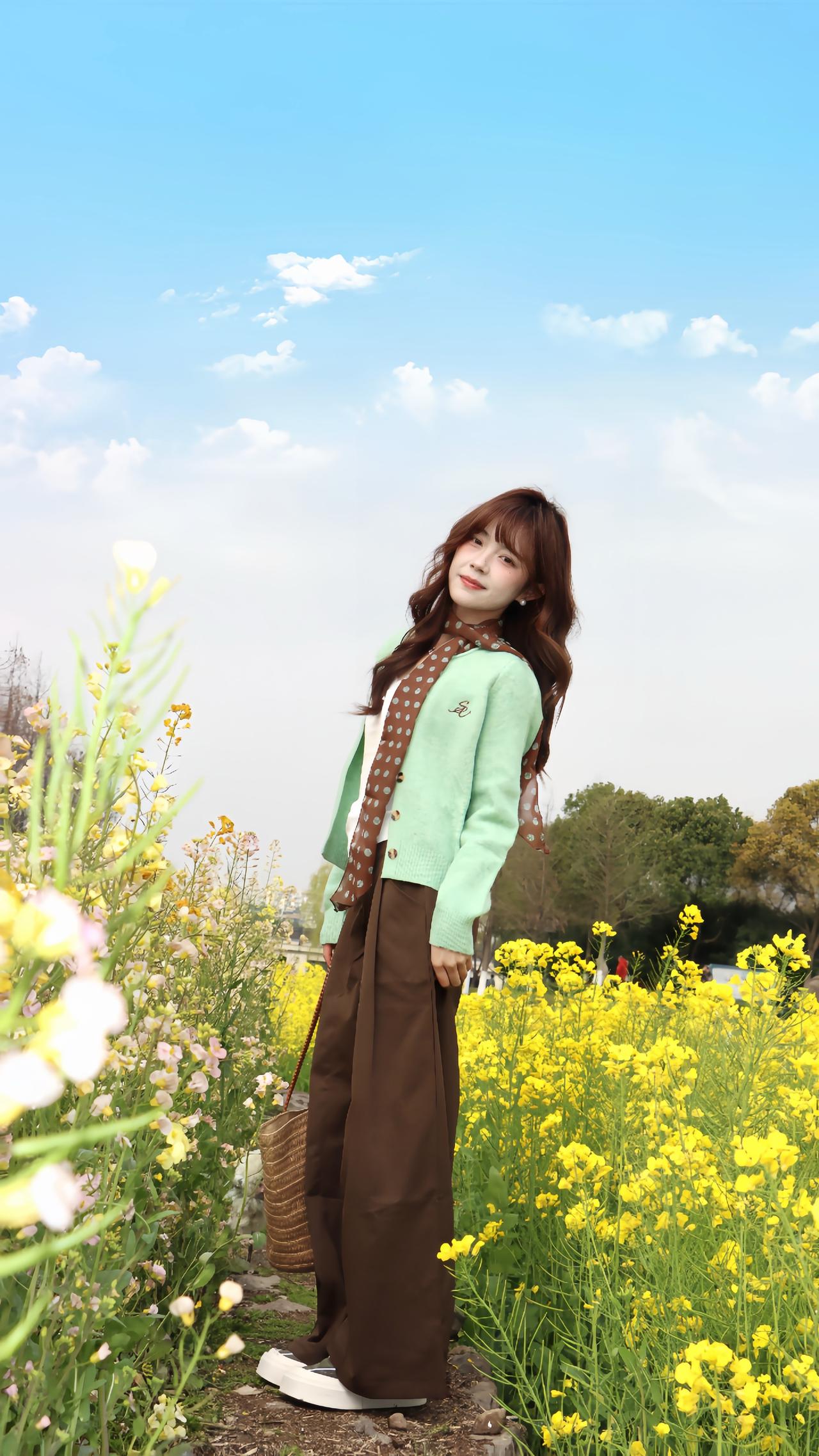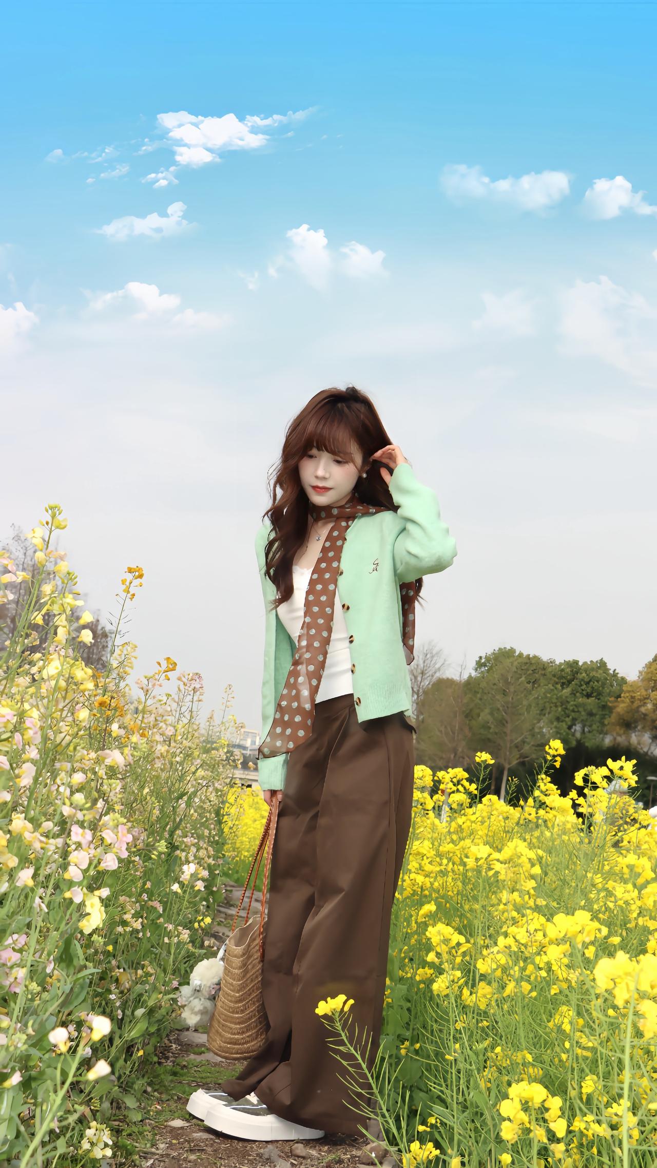 早春穿搭公式:薄荷绿开衫➕深棕色阔腿裤 太适合春日出片 春日穿搭 春日美女感防晒穿搭