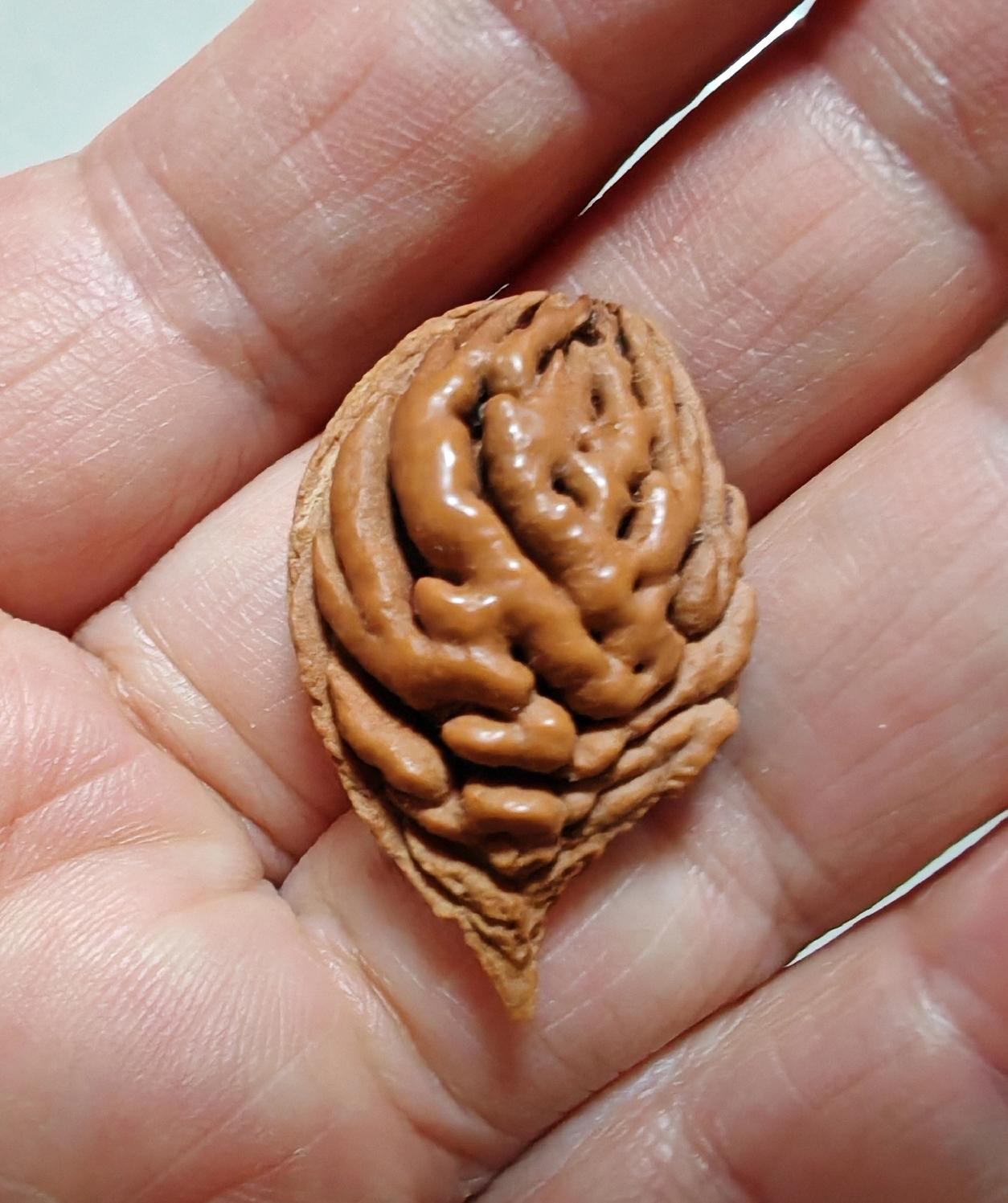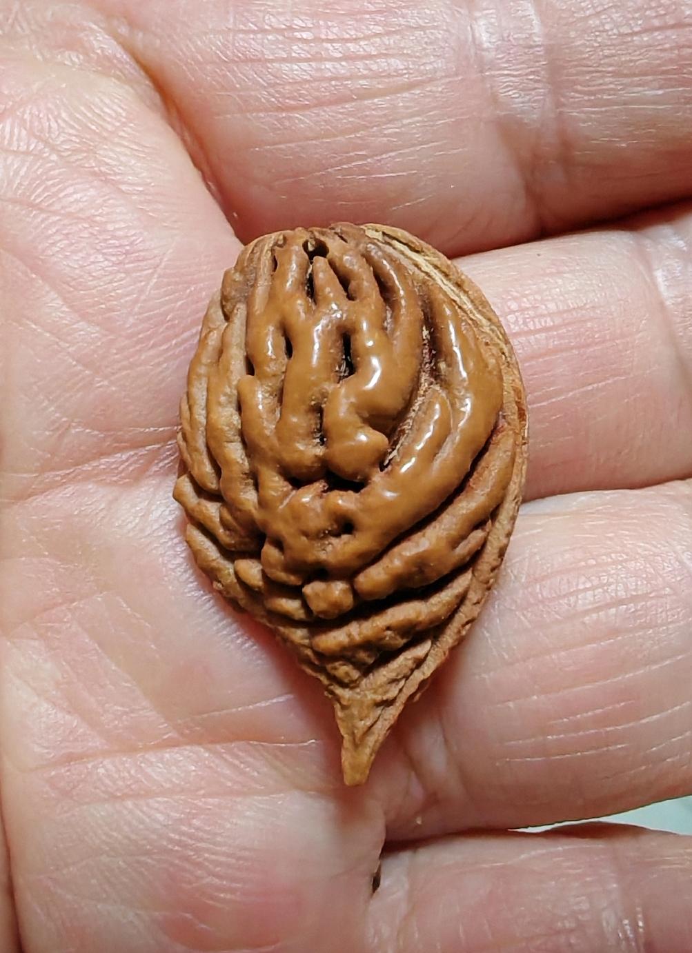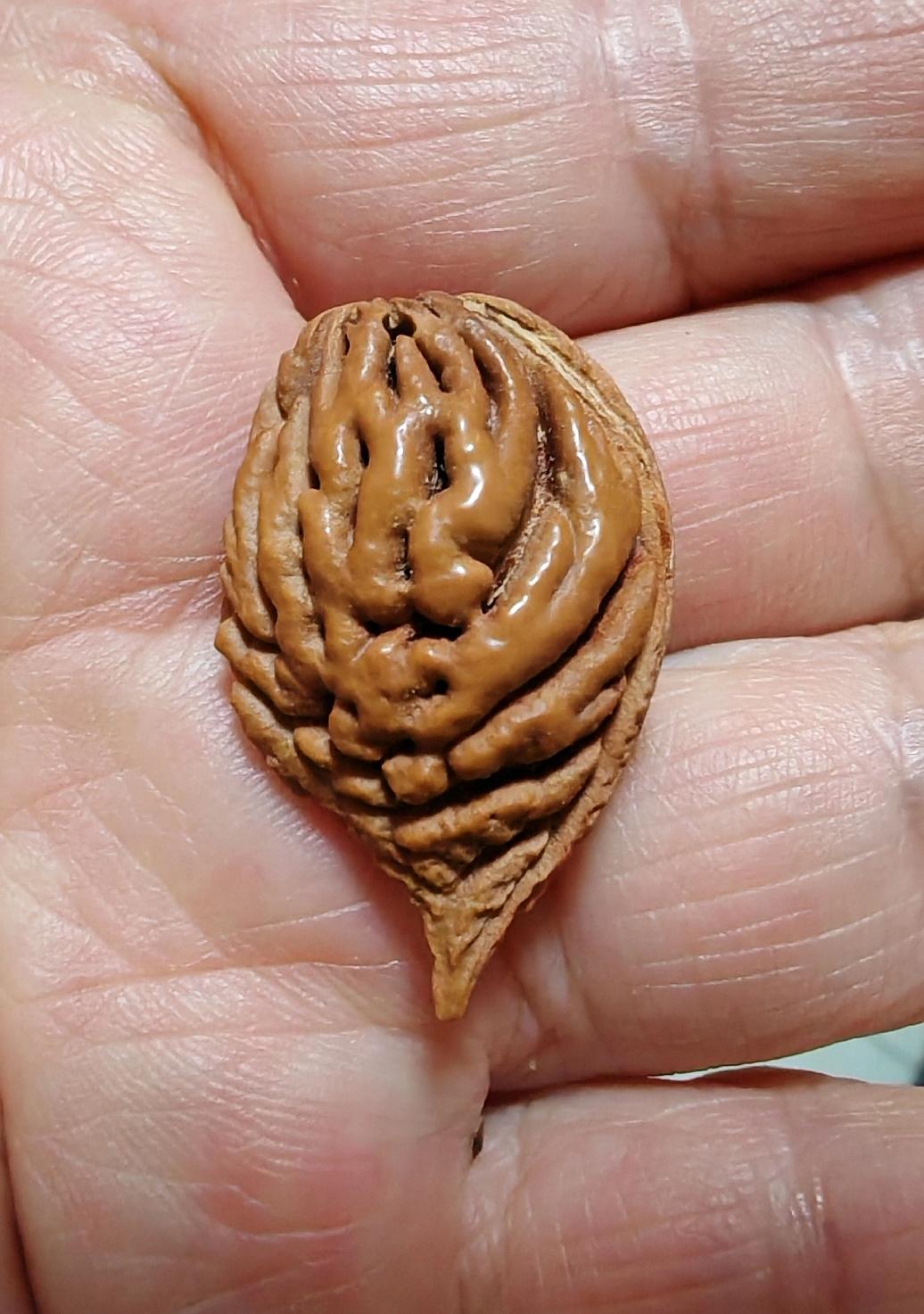 这两枚桃枭的花纹真是太美了,就是清理起来太费手了! 用刷子刷了半天,小的那枚清理得差不多了,大的一枚用牙针也挑不干净! 干净的桃枭是费大工功才能让它变漂亮哟! 继续刷刷刷! 朋友们,你们是怎么清理的呢?