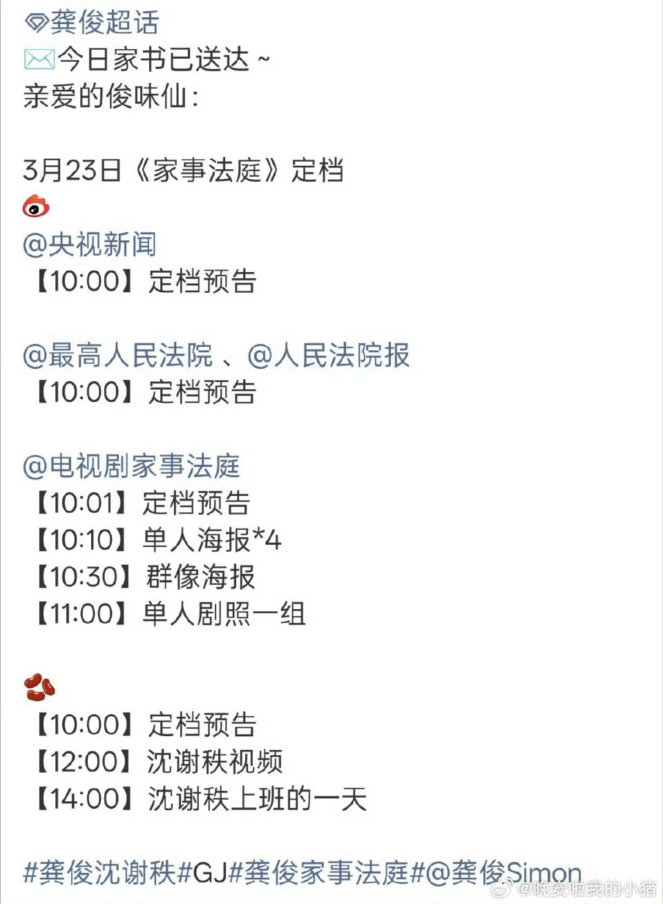 龚俊家事法庭明日官宣定档,官宣的官博很强大