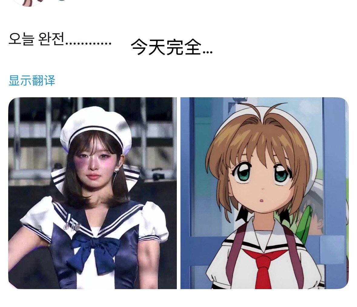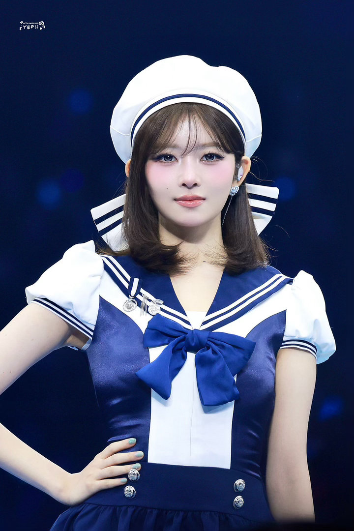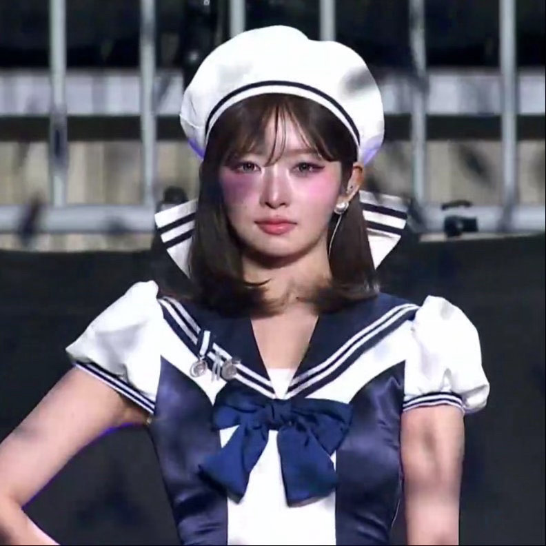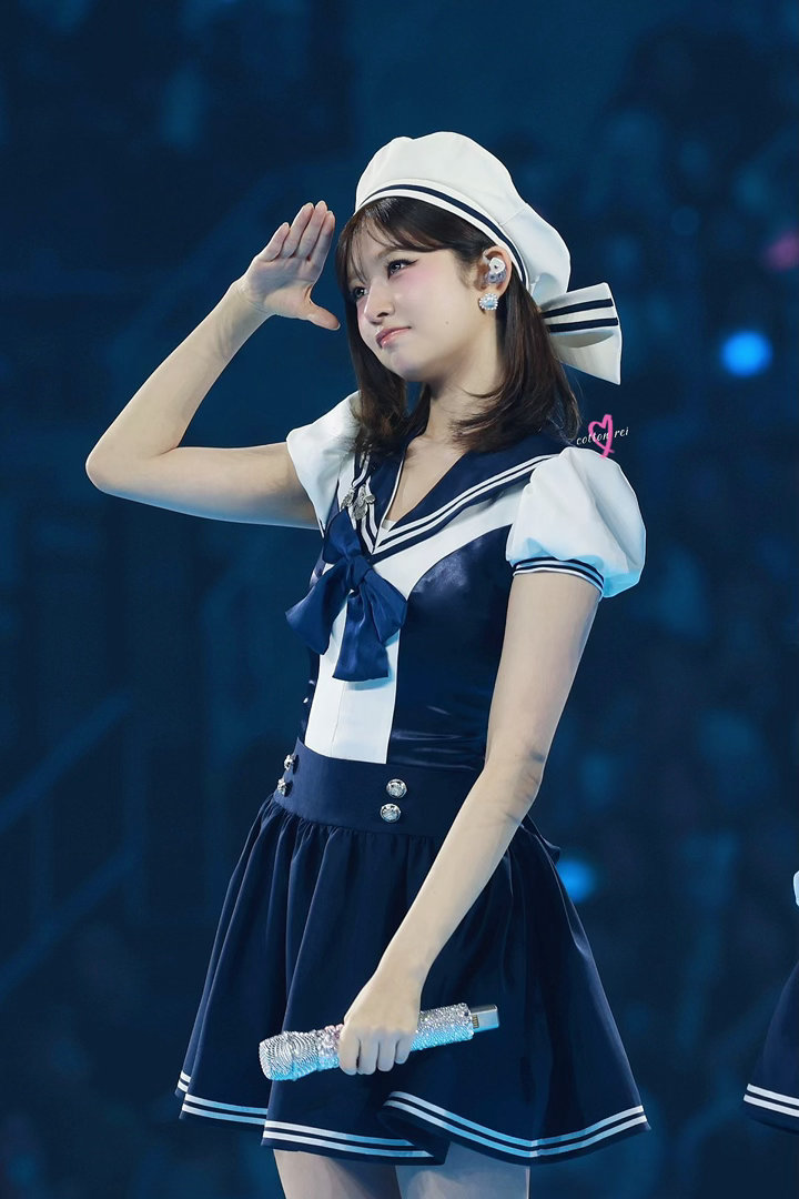 今天水手服+蝴蝶结贝雷帽造型完全是动漫少女的IVE REI,卡哇伊!