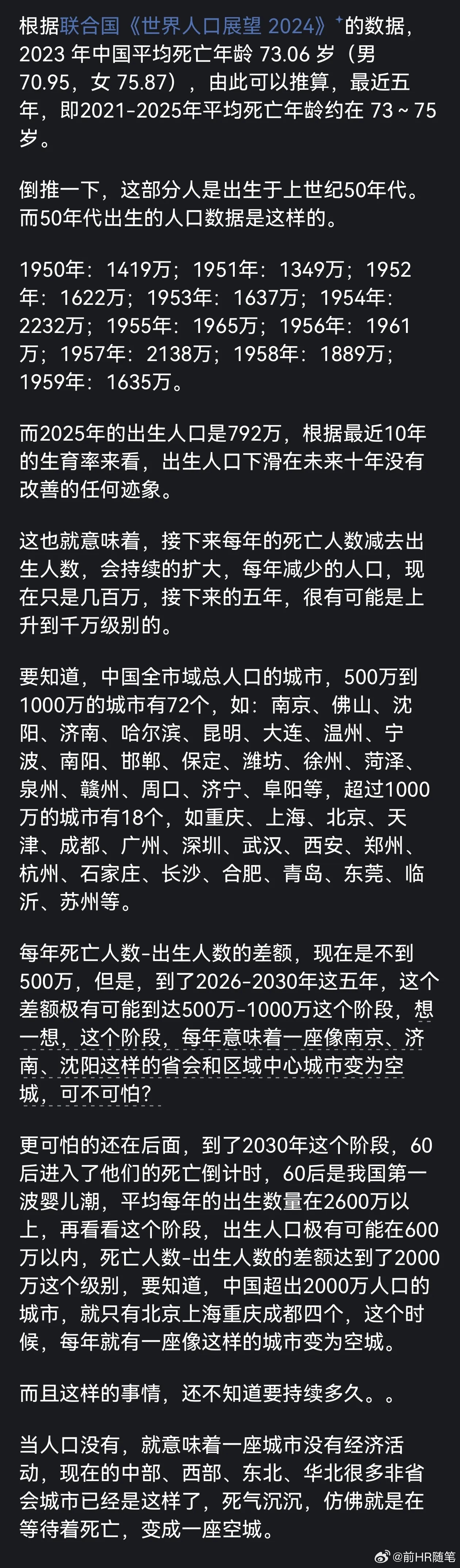 以后一年消失一座大城市,市场经济下没有人就没有需求,就没有一切。包括以后大学都要缩减一半。因为出生孩子只有大学学位一半,一个孩子两个大学学位等着他们。