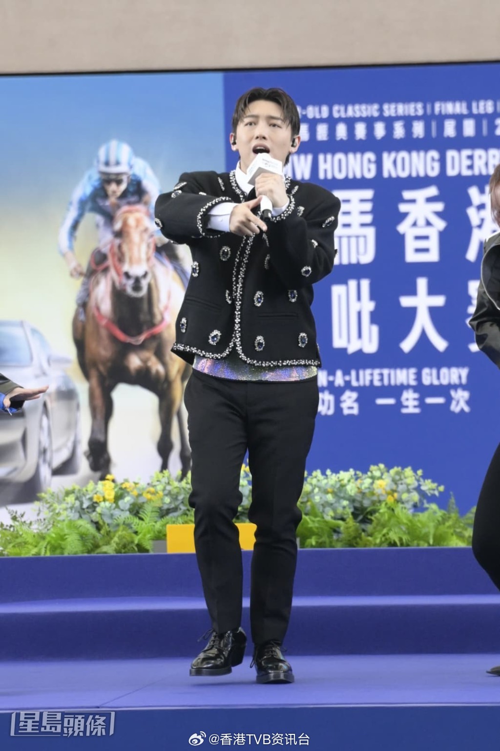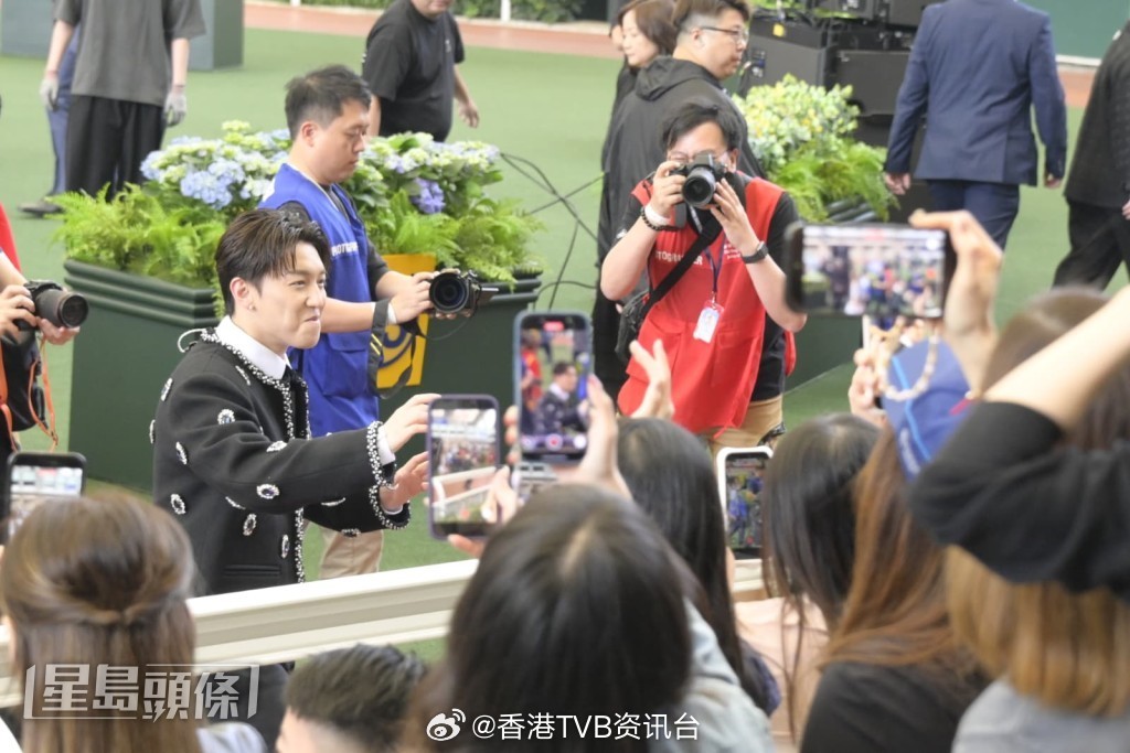 张天赋今日(22日)为马场活动担任表演嘉宾,献唱5首歌曲,大批到场支持的粉丝不时欢呼大叫。他完成演出后又走到粉丝面前挥手打招呼,场面热闹。他表示相隔半年再出席马场活动很荣幸,被问到酬劳是否可观时,他表示不清楚,演出顺利就很开心。提到昨晚在澳门演出,今日又赶到马场,连走两场行程充实,他笑说要多谢经理人。
