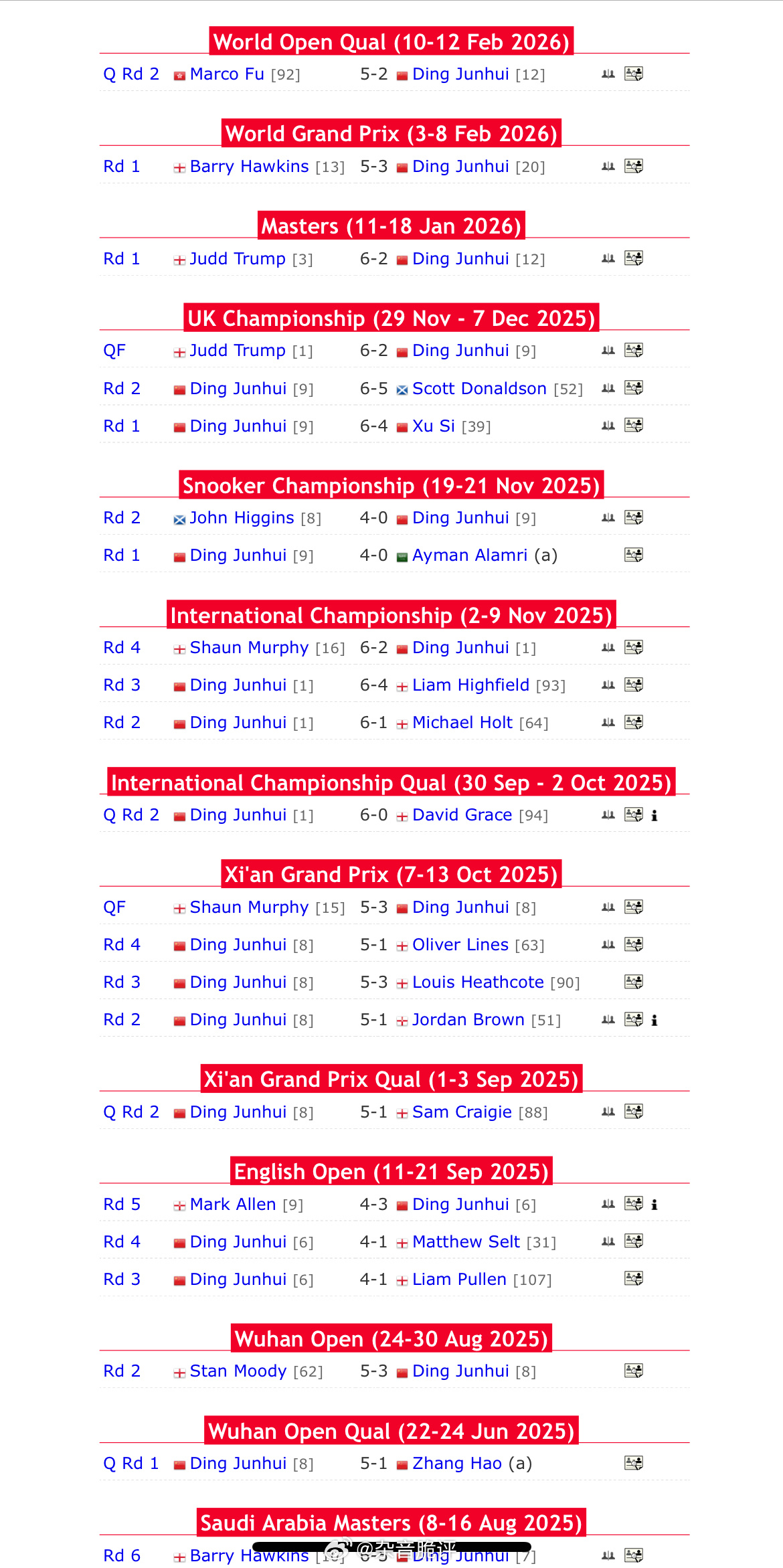 大观山人 2 2026-03-23 21:51 丁俊晖这些年是因为眼疾导致长台不准,从而不敢拼长台,只能采取防守或者给对手留长台机会靠对手打不进,而且丁这种咖位也存在傲气,不喜欢耍阴谋诡计更不屑于当小人,所以哪怕存在漏球也不会去打那种卑鄙的球,还有,丁的打法一直说追求完美走位,这种打法必须要有极高的杆法运用,这也是巅峰丁俊晖被称为围球之王的原因,黑子们看到的永远是丁率先被别人长台得分,永远是丁的失误,但根本不去谈丁的眼疾,就像对待以前的刘翔、孙杨、易建联等人一样,黑子们眼里只有缺点,没有优点,只会一味的黑,从不会给予赞誉