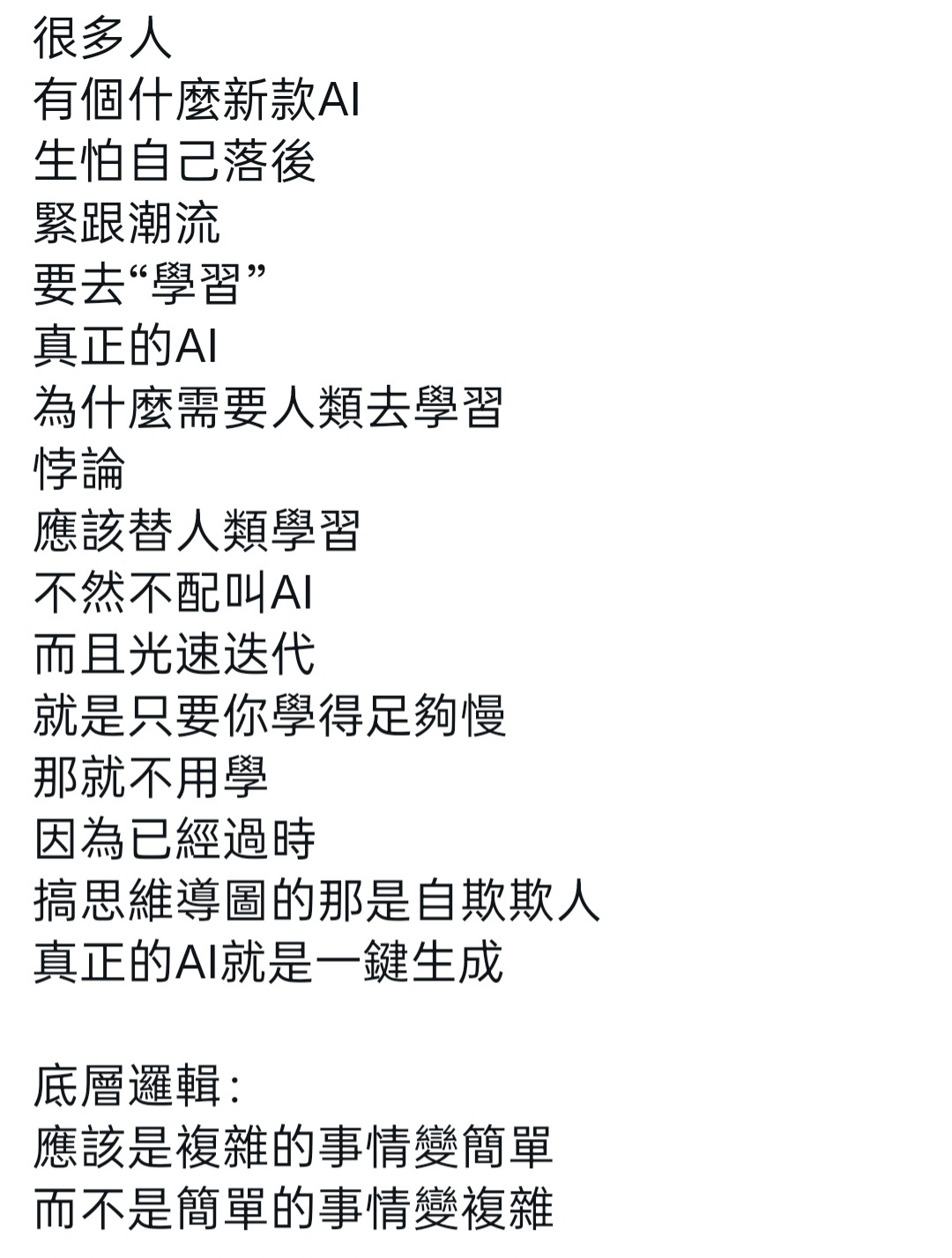 哈哈,普通人就不要AI焦虑了,只要你学得足够慢,那就不用学。