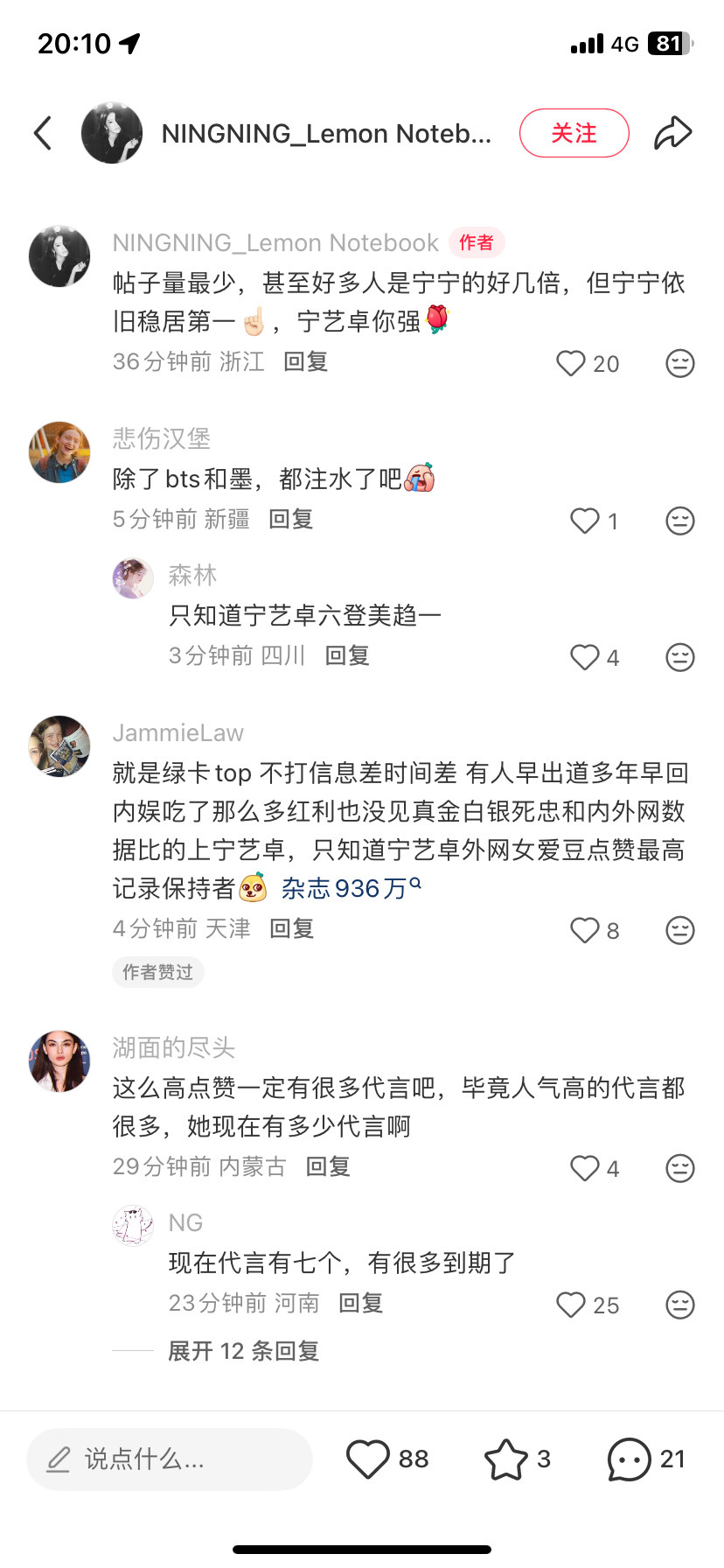 金玟庭两点发的已经破万 宁艺卓九点发的仍未破万
