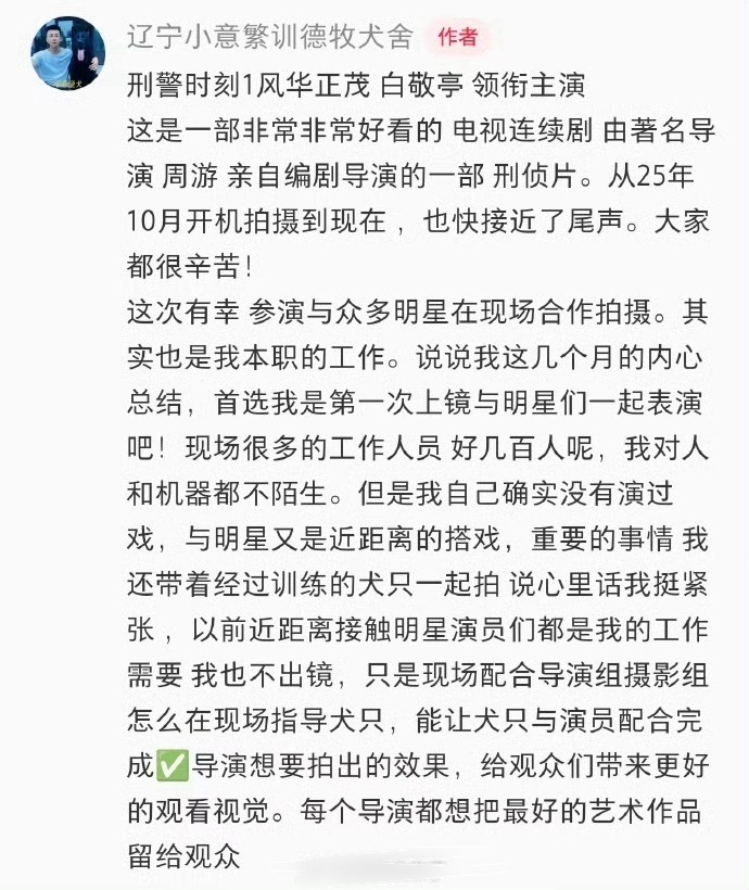 白敬亭被《刑警时刻1风华正茂》群演夸了,说他情商高,人特别好,认真努力敬业