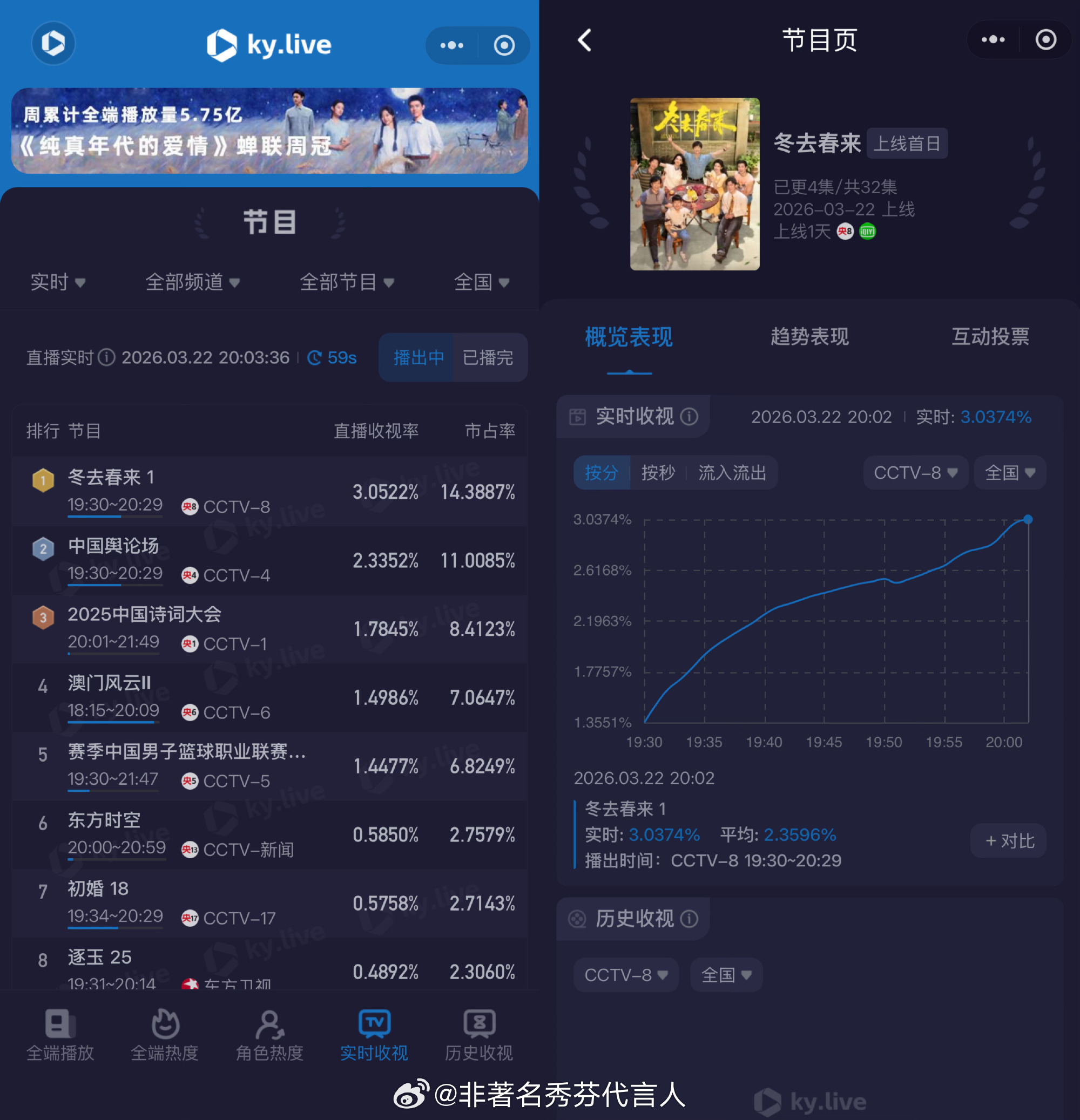 冬去春来这开局,属实是“炸”了!酷云收视率破3、全平台热度登顶、开局5个广告——