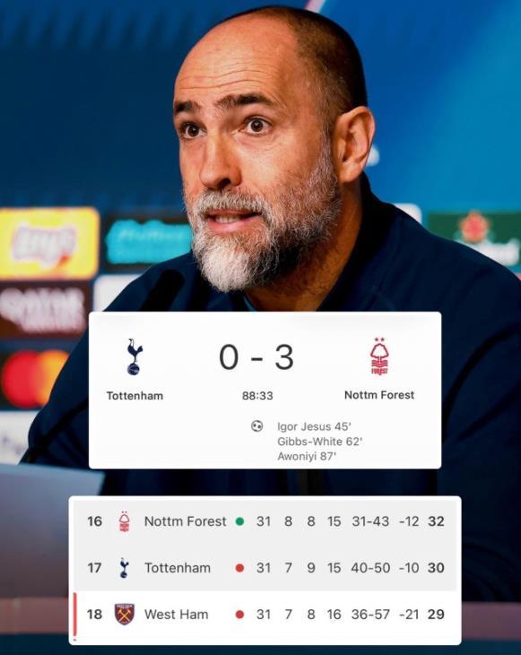 热刺要感谢维拉啊,他们击败了西汉姆联,让0比3输球的热刺依然领先降级区1分。热刺进入2026年之后,在英超13轮不胜。救火教练图多尔的能力还不如弗兰克呢,球员很明显也不为他卖命,克罗地亚人下课已经是不可避免的了。 按照热刺现在的状态,下一轮客场踢桑德兰也是毫无胜算。如果最终热刺降级,那轰动的效果,不比阿森纳拿冠军小多少啊。