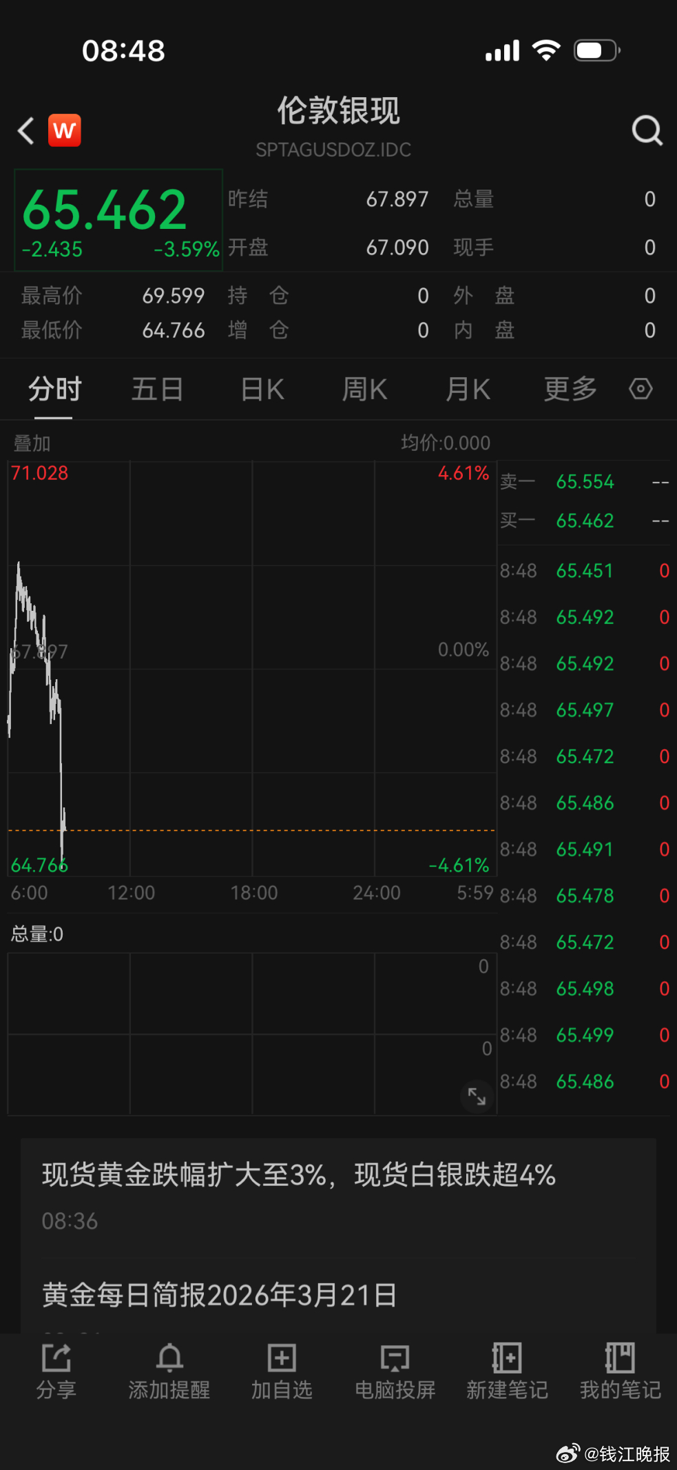 【#黄金白银大跳水#!】3月23日早盘,贵金属价格又崩了,黄金、白银双双大跌超3%。