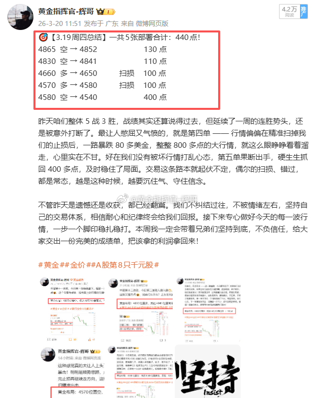 感谢兄弟们全程信任、紧跟节奏,上周的成绩大家有目共睹。本周行情依旧,咱们保持状态,不骄不躁,继续精准布局、稳健出击,把战绩再往上冲一冲!还是那句话,跟着辉哥,只做实战、只看结果,用战绩回应所有质疑,用节奏带大家站稳市场!💪