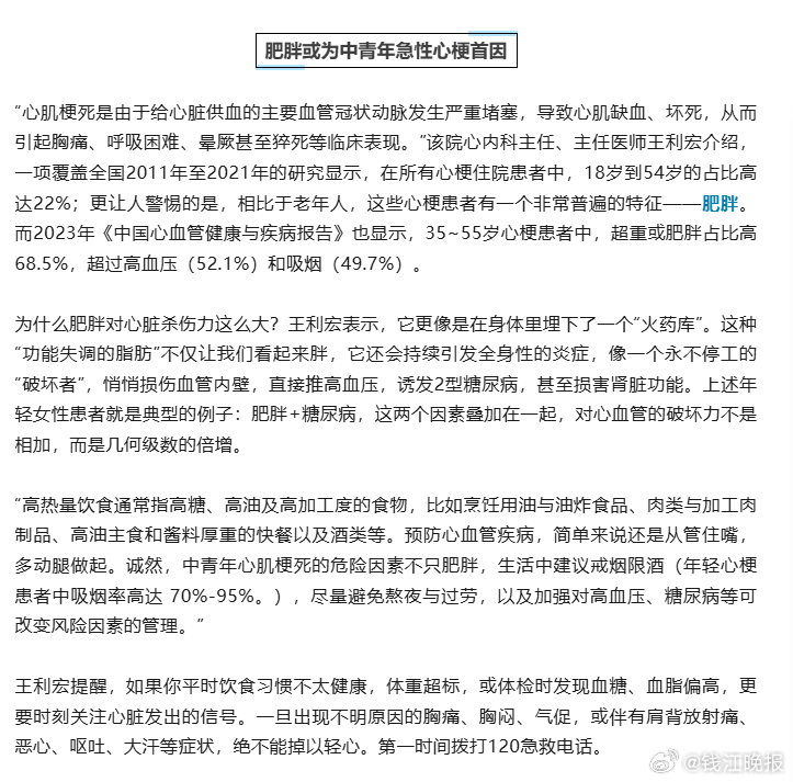 【#27岁姑娘每天奶茶外卖突发心梗#】几天前,浙江省人民医院心内科救治了一位体重近200斤突发心梗的年轻女性患者,转危为安的姑娘有点懵:“我才20多岁啊,怎么就……”