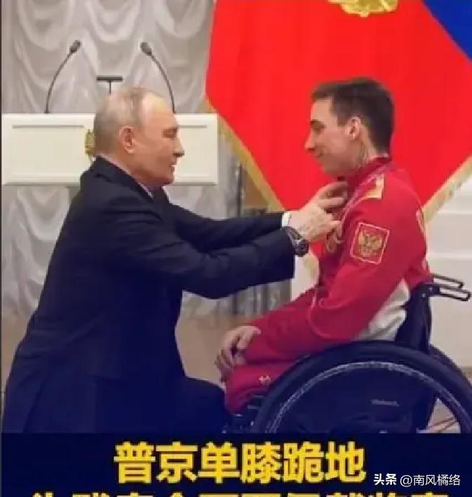 普京这一跪,跪出了让世界沉默的力量,镜头对准克里姆林宫,那天是3月19号,普京走了出来,他步履很快,但在轮椅前停了下来,对面是伊万,一个残奥冠军,普京没有站着,他缓缓的屈下了膝,单膝着地,全场的人都傻了。 这个动作太突然,礼宾官甚至都愣在原地,这时候没人敢出声,媒体区也都静了下来,快门声消失,大家都不敢相信,硬汉跪下了,为一个运动员,这不是演戏,动作很慢、很稳、很重,他要平视伊万,不再是俯视,这种反差。 普京伸出手,去拿了那枚勋章,那是友谊勋章,很有分量,他发现了别针很钝,他没叫助手,他摘下自己的手套,手指很灵活,一点点的去调整,他很耐心,他在等,等伊万调整呼吸,轮椅上的汉子,眼眶红了,这不仅是奖牌,更是自己换来的尊严。 伊万很命苦,他来自孤儿院,双腿有残疾,从小就受到过很多的冷眼,但他练了滑雪,很多时候都在雪地里面爬,在严寒里面挺着,他没有天赋,但是他够狠、在米兰赛场上,他拿了双金,那是2026年,意大利的雪见证了他的魂,他说赛道是直的,人心不能弯。 俄罗斯等了太久,整整十二年了,国家的标识才回来,以前是中立,赛服没有国旗,赢了也没有国歌,甚至回国也没有人来接,那种冷清真的很扎心,但是这一次不一样,他们带回来了八金,总排名第三,普京说这是韧性,是顶着压力,硬生生拼出来的。 看台下的中国人,也感同身受,在那届米兰赛,中国队太猛,拿了十五金,稳居第一名,视障选手王行懂,靠的是领滑员在雪山上冲,余爽和尚金财的配合天衣无缝,大家都很不容易,都是在黑暗里面,找寻那一束光。 这一跪太深,有人说是表演,有人说是政治,其实没有必要,普京的姿态,已经说明一切,他把姿态放低,把英雄托高,这叫尊重,不是施舍,那一个时刻,权力弯了腰,尊严站了起来,这比语言,更加有杀伤力。 网上有人说:平凡人被看见,妥妥的破防,有人说:这演技也大好吧,还有人反驳:真诚是装不出的,看那摘手套的细节,一位残障家长说:这一幕,给了我们活下去地勇气,努力不会白费。 普京这一跪,作为一国之首,他能放下自己的架子,去贴近底层,这本身就是力量,世界看惯了傲慢,偶尔的一点温情,最能戳中人心,不管未来如何,这一刻的平等,是真实存在的。 强大的真谛,不是声音大,也不是拳头硬,而是能俯身去触碰灵魂,那些被忽视的人,也需要光,普京的放平目光,托起伊万,也托起了士气,这种凝聚力,比任何武器都更让人生畏。 散场的时候,克宫下起了雪,伊万在门口整理着自己的围巾,他拒绝了采访,说要回去换绑带,因为小事丢了,大事就没了,他依然冷静,像在赛道上,他摸了摸自己的胸口,勋章还在,那是他的命。 其实我们都一样,在生活的赛道,都在拼命的跑,有时候会摔倒,有时候会绝望,但是我们都在等,等一个眼神,等一个肯定,等那一个瞬间,被世界温柔相待,这一跪,卸下了隔阂,让尊严回家。 伊万拿到了他的荣耀,俄罗斯拿回了它的身份,世界记住这一跪,这就是现实。 你怎么想,欢迎聊聊。