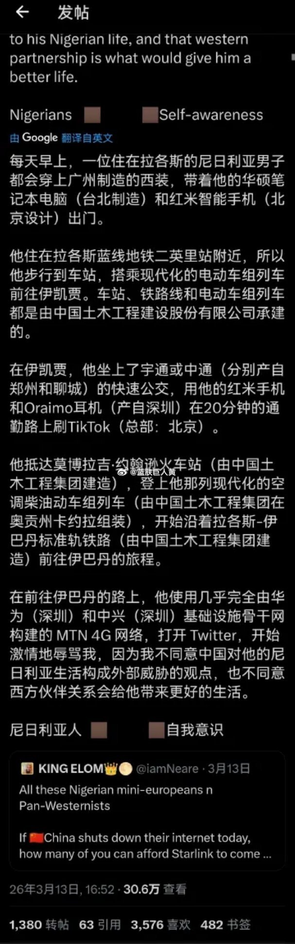 作者同时批判,不少非洲人缺乏地缘历史认知,分不清真正的敌友,反而轻信曾瓜分非洲的西方势力。