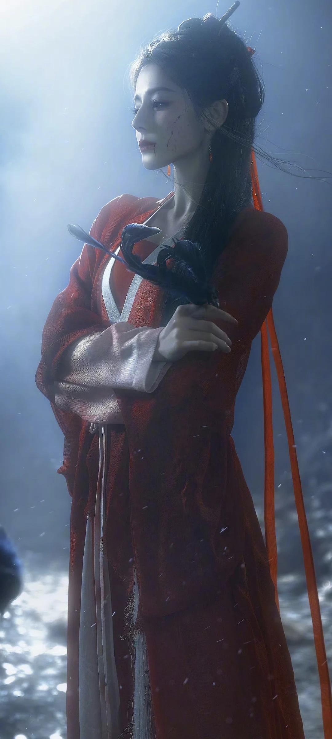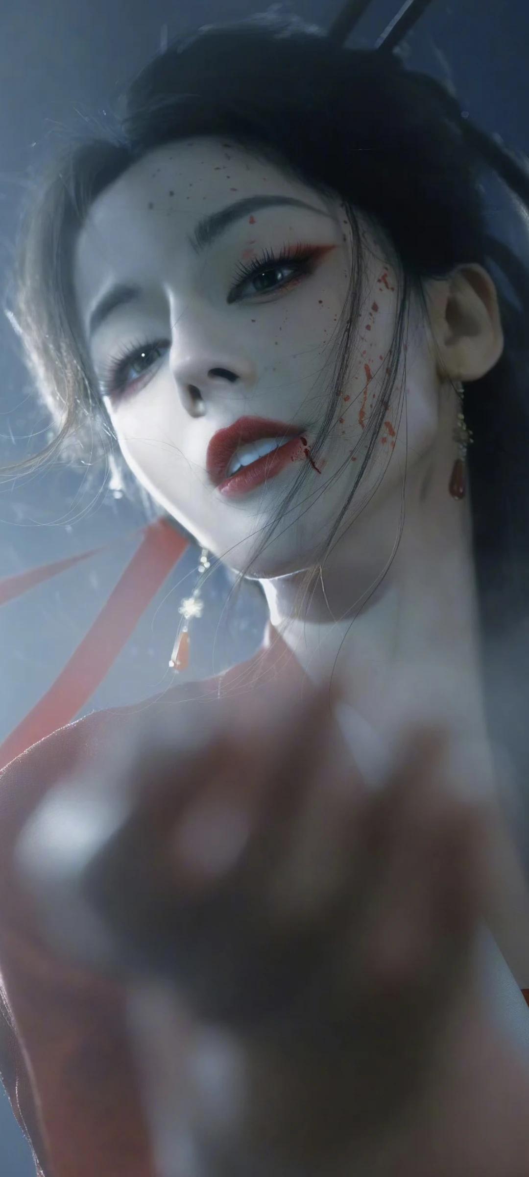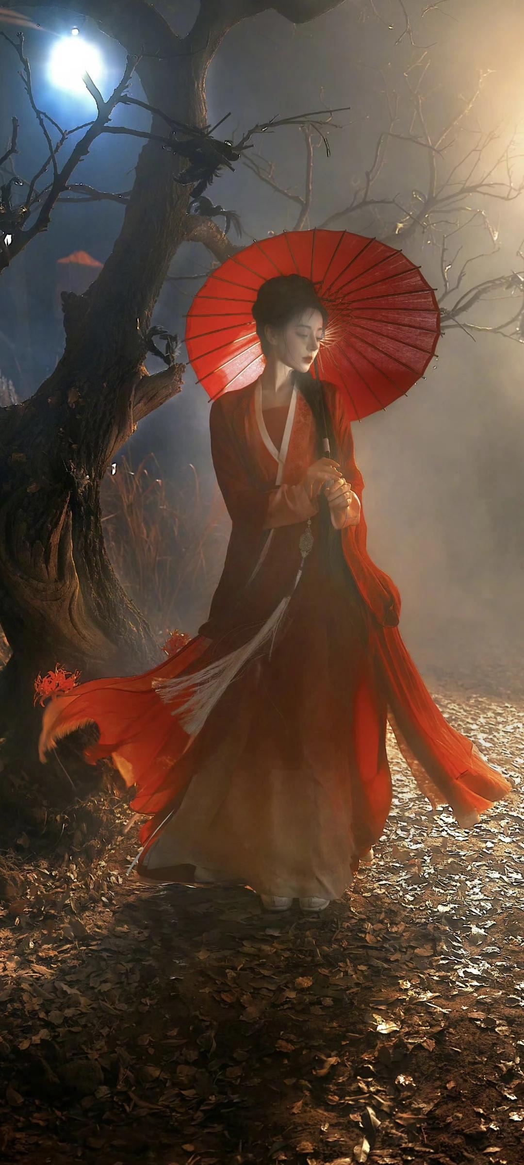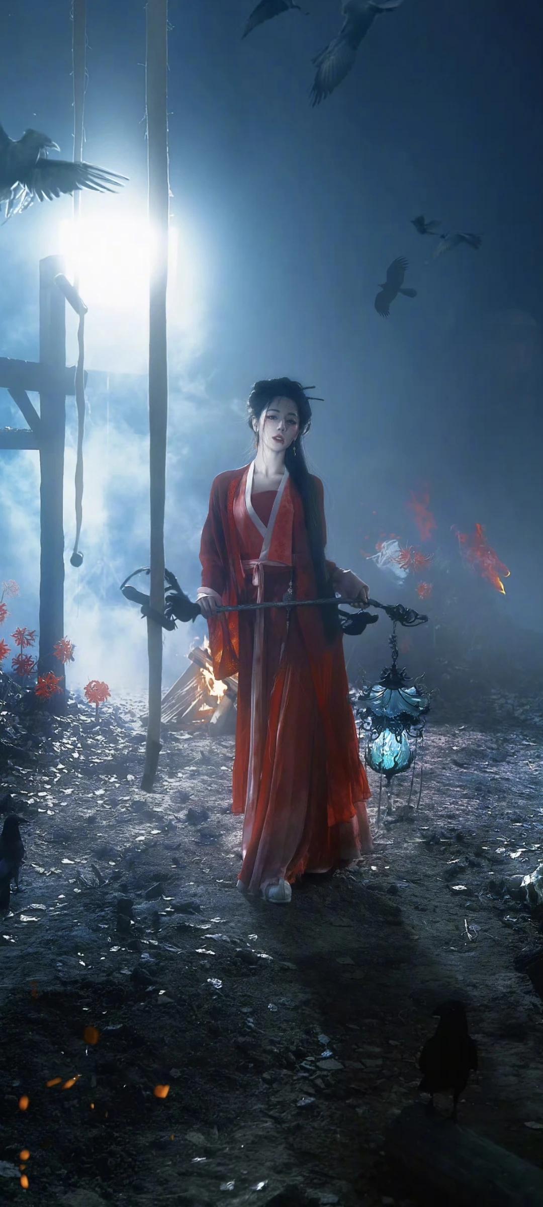 迪丽热巴壁纸~红衣如烈火般明艳,曼珠沙华在旁静静相伴,她在暗夜里,演绎着一场绝美的仙侠梦。
