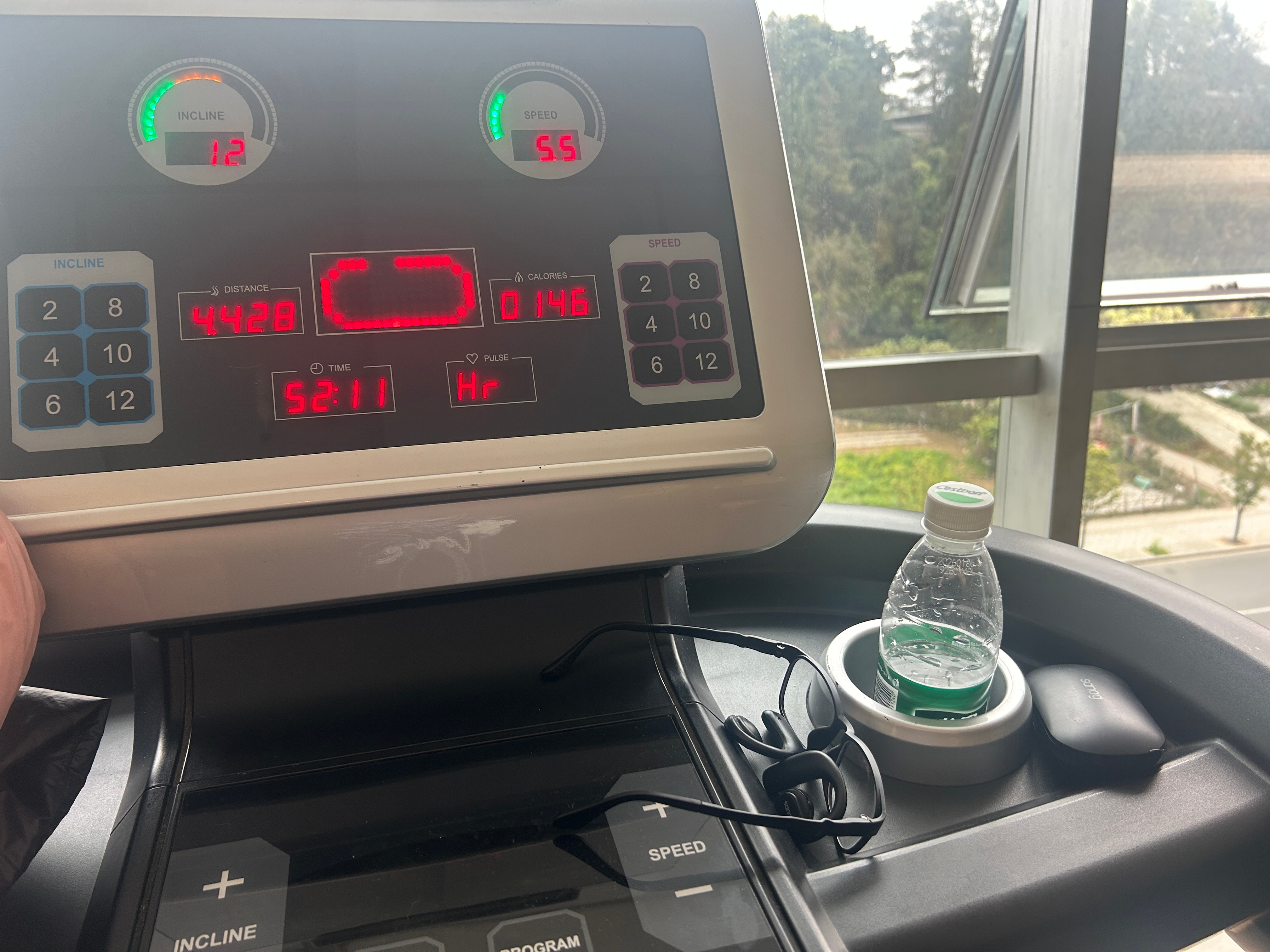 今天的有氧50min ✅间歇爬坡真的太上头了坡度12/10 速度5/5.5 每5分钟交换一次运动就是坚持 虐是真的虐爽也是真的爽长期运动可以解决生活中很多问题