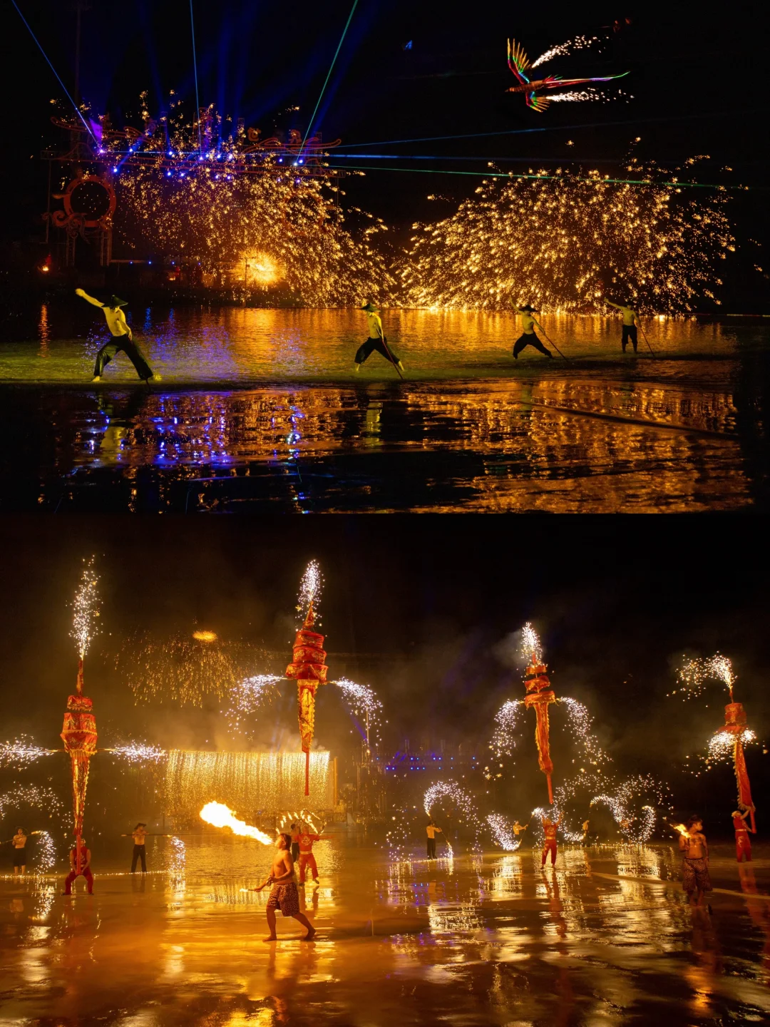 这里是晚上的主场,摩天轮下的巨型哪吒敖丙花灯,造型很帅!还有精彩的天火表演不要错过!