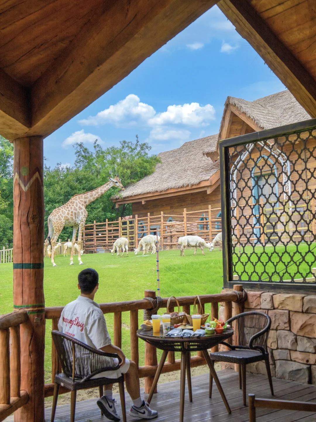 早上起来会有长颈鹿羊驼共进早餐