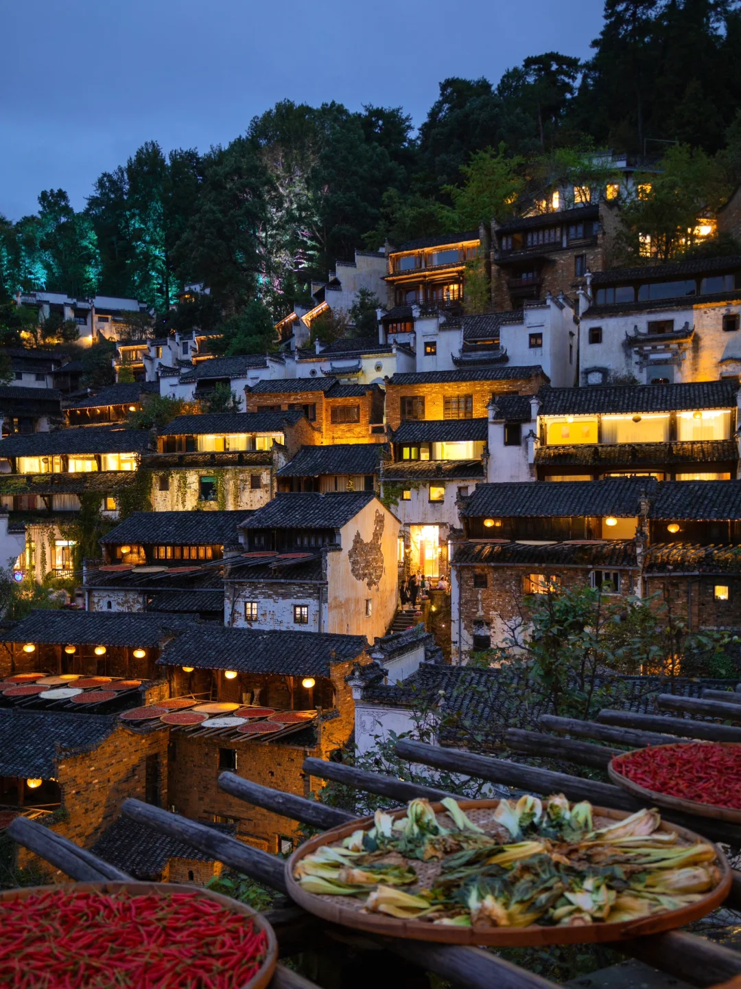 一年四季都在晒秋的高山古村,建议在山上住一晚,可欣赏到万家灯火,好像周杰伦歌里的红尘客栈。
