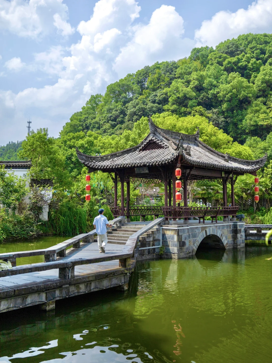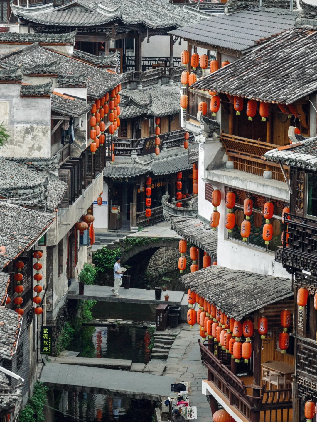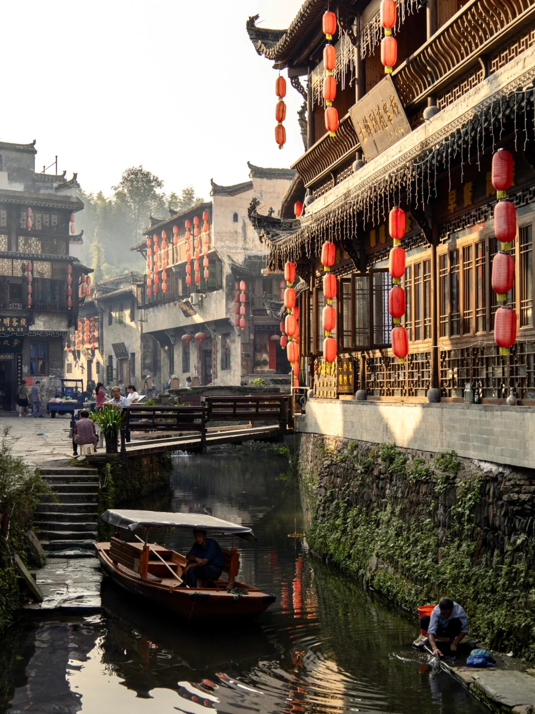 徽派的小桥流水人家,两岸挂满了红灯笼,特别有烟火气,小众又出片。