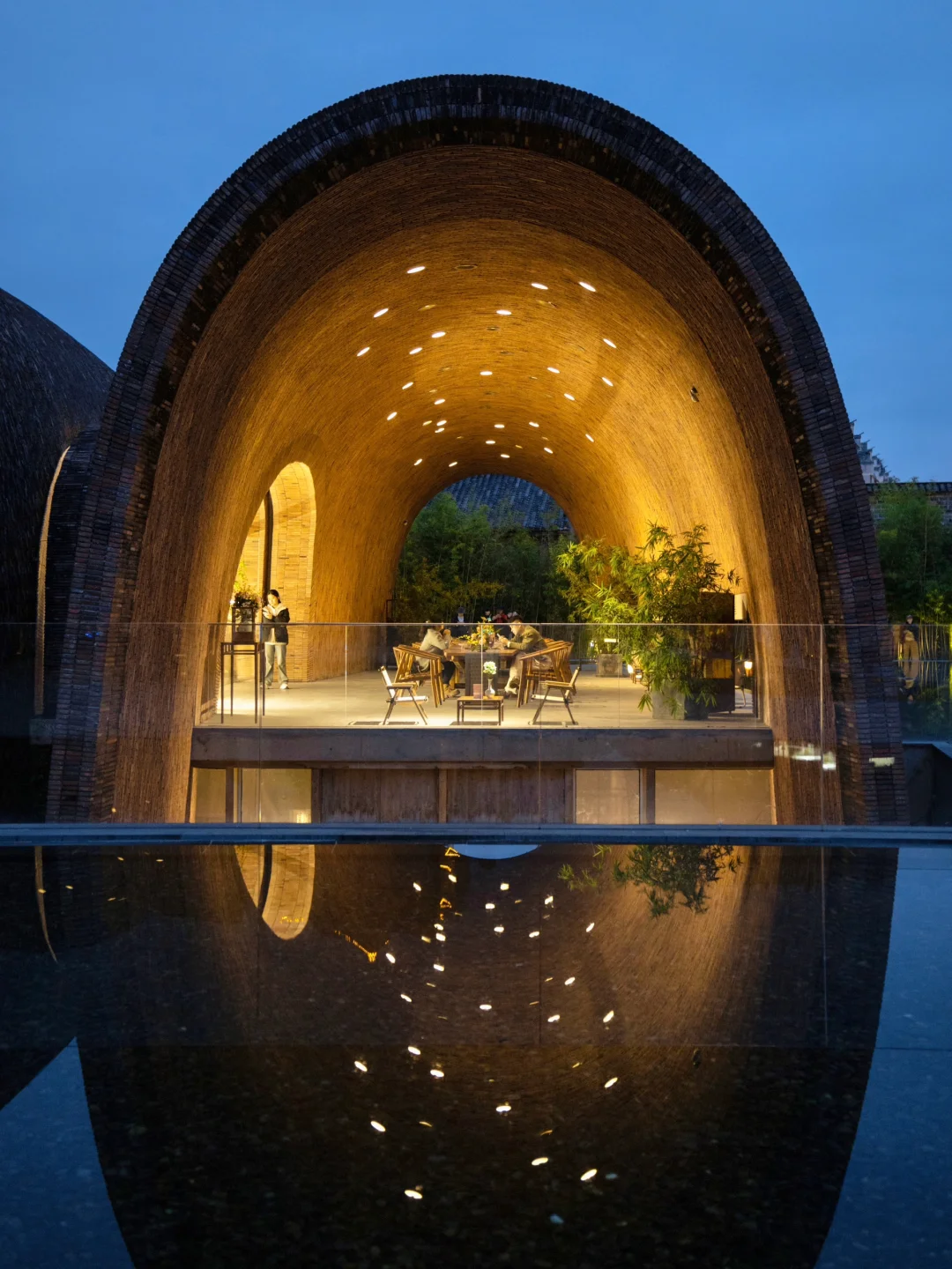 博物馆的拱形建筑很出片,尤其是日落后的蓝调时刻,冷暖对比很梦幻。