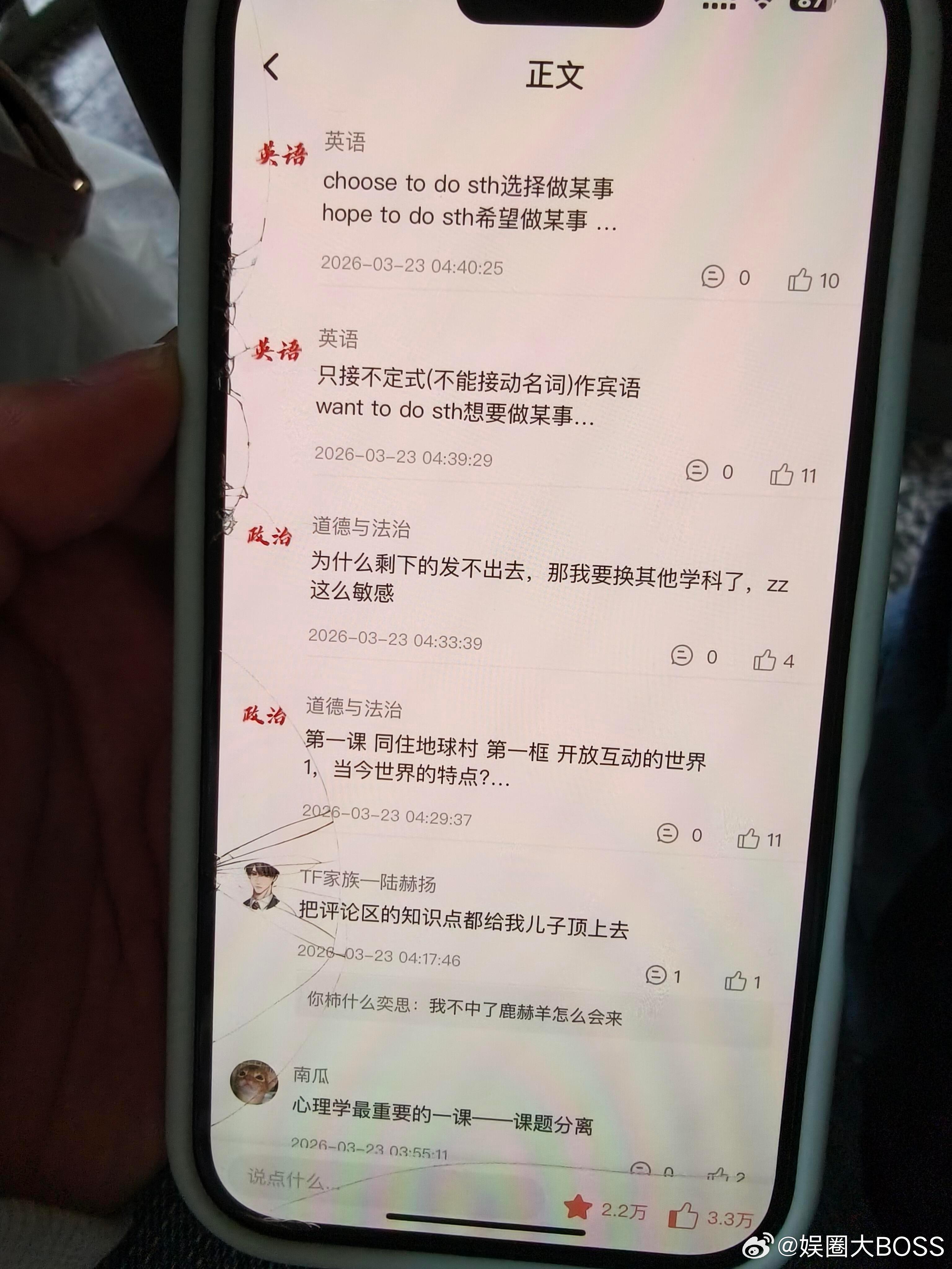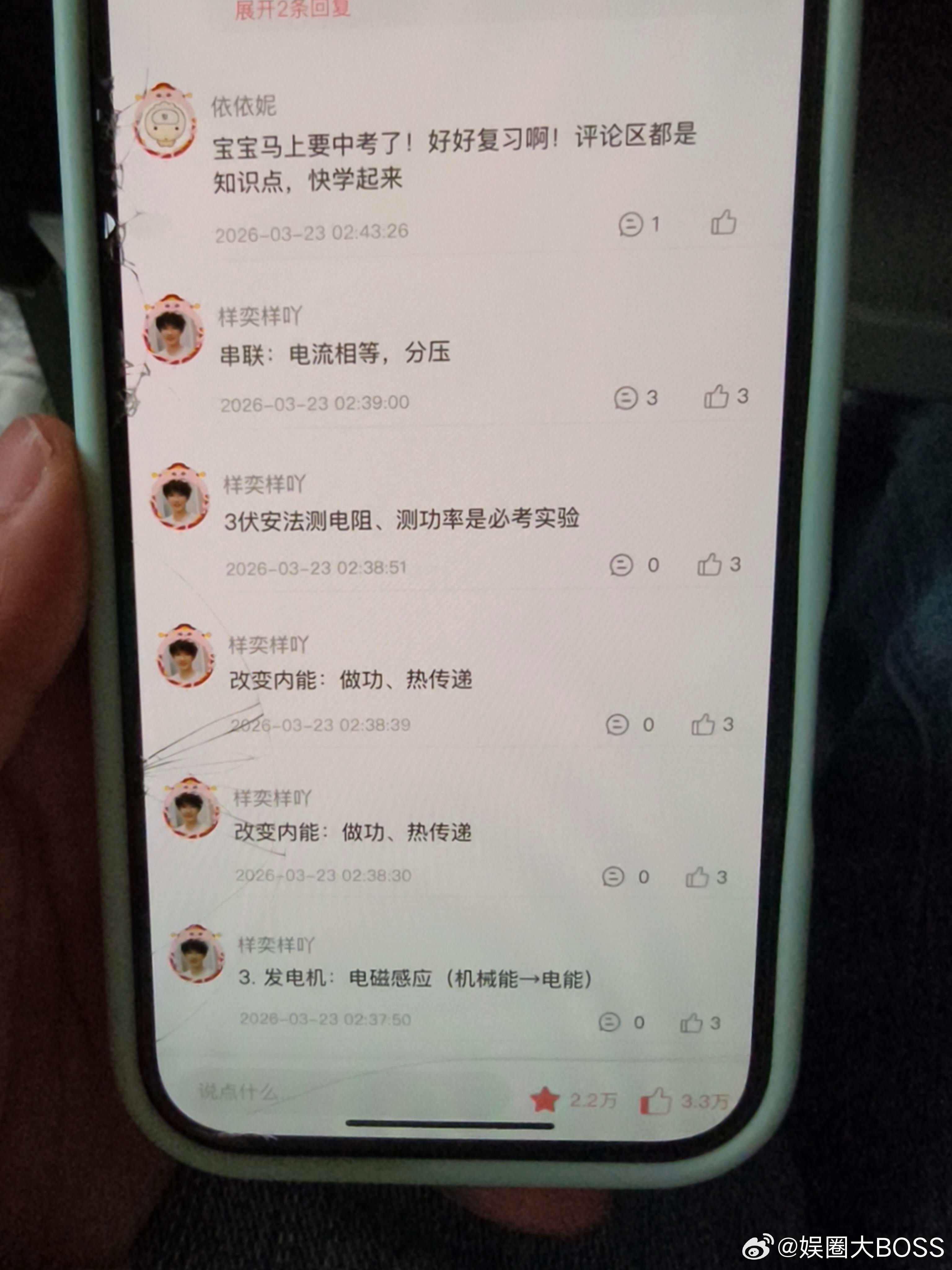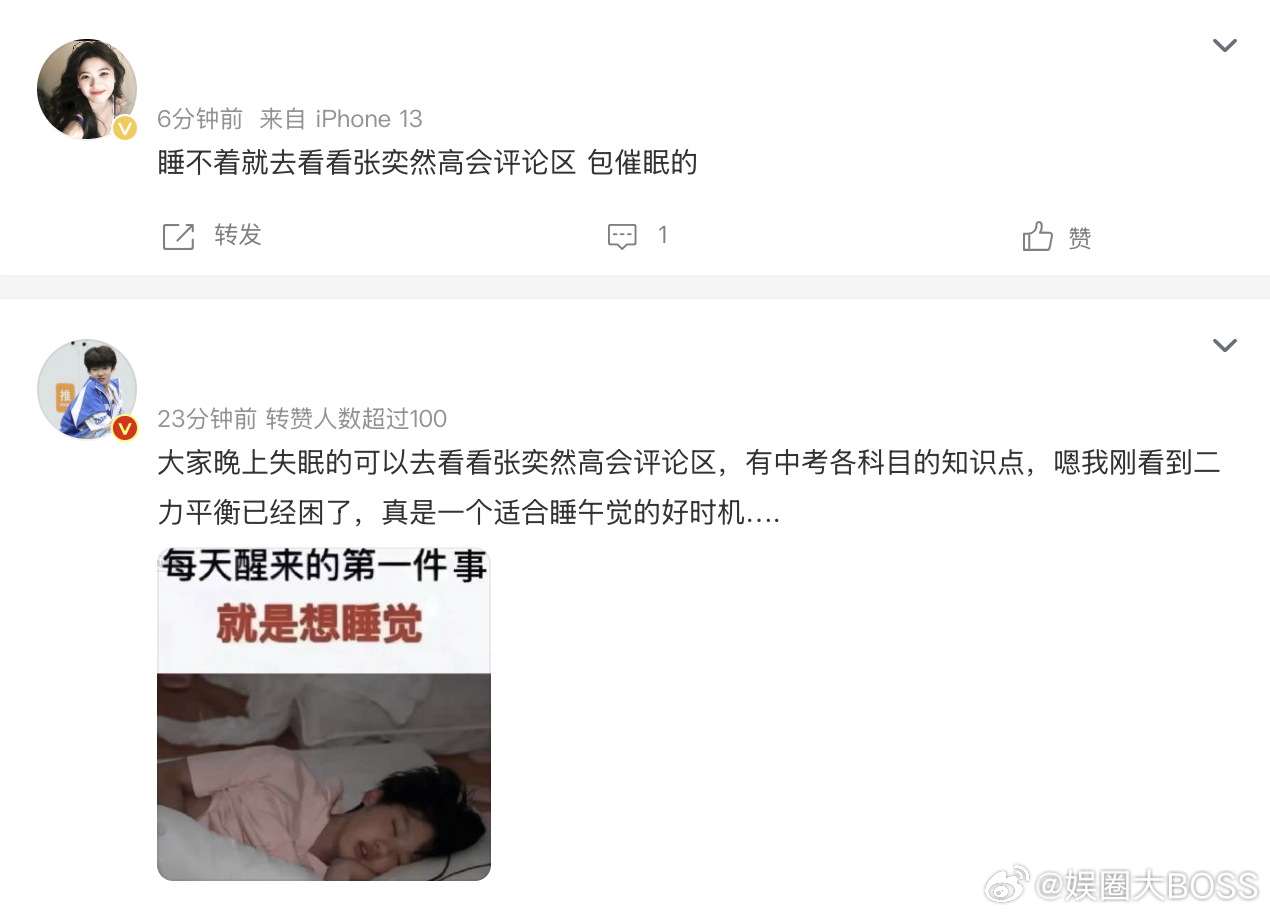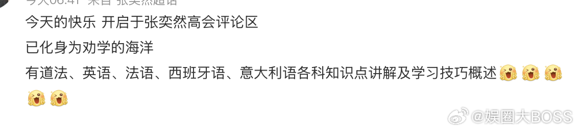 张奕然高会评论区 大型劝学现场张奕然高会评论区全是中考知识点 哈哈古有孟母三迁,今有然妈劝学,合理怀疑,张奕然要是真把评论区都看完,中考能提不少分