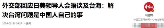 中方反击不过夜!万万没想到,美日竟踢开中国,不许改变台海现状   3 月 19 日,特朗普和日本首相高市早苗会谈后,把 “维护台湾海峡和平稳定” 作为共识,还加了一句听起来很 “文明” 的话,反对任何用武力或威吓单方面改变现状。   先看美国这边。特朗普政府当下最棘手的是中东局势。美军在伊朗方向持续行动,兵力与资源被大量牵制。霍尔木兹海峡的航运安全、油价波动,都在牵动美国国内经济与政治神经。   在这种分身乏术的时刻,美国最不想台海真的出事。一旦台海升温,美国将被迫在两个战略方向同时承压,这是其绝对不愿面对的局面。   所以,这句 “反对武力改变现状”,首先是美国给自己递的台阶。它用一句冠冕堂皇的话,对外释放 “我在管、我要稳” 的信号,对内安抚盟友、安抚选民。   它既不想真的为台海与中国摊牌,又要维持在亚太的威慑力与存在感。这句话就是最好的遮羞布,既能稳住台海局势,又不用付出实际行动成本。   同时,这也是美国给日本递的台阶。高市早苗此次访美,带着巨额投资与军事合作承诺而来,本质是想抱紧美国大腿,为日本军事松绑、扩大地区影响力寻找靠山。   美国需要日本在亚太前沿站台、分担成本,但又不想日本在台海问题上冒进、把自己拖下水。这句话等于给日本划了线:你可以跟着我喊口号、搞配合,但不能轻举妄动、擅自升级局势。   日本可以在台海议题上发声,但主导权必须在美国手里。这既是安抚,也是约束,让日本既能满足国内政治需求,又不至于闯下美国收拾不了的大祸。   再看日本。高市早苗政府上台后,政治立场持续右转,在涉台问题上不断试探、突破底线。此次跟着美国高调表态,是日本自身战略诉求的集中体现。   对日本而言,这句话是它给自己设的门槛,也是给中国设的门槛。   日本想借台海议题,把自己深度绑进美日同盟的安全框架。它通过附和美国,换取美国对其军事扩张、防卫政策调整的默许。比如扩大反导产能、强化西太平洋部署等,都是日本借势突破战后束缚的具体动作。   同时,日本也想借这句话,把台海问题进一步国际化、复杂化,以此牵制中国发展精力,为自身在亚太争取更多战略空间。它把中国维护国家主权的正当行动,歪曲成 “改变现状”,本质是想剥夺中国处理内政的权利。   但日本也清楚,自己没有能力单独在台海与中国对抗。它必须依附美国,在同盟框架内行动。所以这句话也是日本给自己设的安全门槛:既表达强硬立场,又把风险控制在美国可承受、自己可抽身的范围内。   它不敢真的越过红线,只能在话语层面配合美国,在行动层面步步为营、试探前行。   最后看这句话对中国的真实意图。美日刻意模糊 “现状” 定义,不提一个中国原则,本质是把中国捍卫国家主权、反 “台独” 的正当行为,污蔑为 “破坏稳定”。   这句话看似中立,实则是给中国设下的双重门槛。   一方面,它试图用所谓 “国际共识”,束缚中国实现国家统一的权利。它想让中国在台海问题上投鼠忌器,不敢采取任何维护主权的强硬行动。   另一方面,它又为自己未来干涉台海预留借口。一旦台海局势出现变化,美日就可以打着 “维护现状” 的旗号,进行军事部署、联合演习甚至直接干预。   说白了,美日是想把台海问题变成一张可进可退的牌。局势缓和时,用这句话彰显 “负责任” 形象;局势紧张时,用这句话作为对华施压、干涉内政的工具。   综合来看,美日这次高调表态,是一场精心算计的政治表演。   美国是在给自己和日本递台阶,用最低成本稳住台海、维系同盟、牵制中国。日本是在给自己设门槛,借势扩张、绑定同盟、谋取私利。而中国,才是他们共同瞄准、试图设限的对象。   但台海的现状,从来不是由外部势力定义的。台湾是中国领土不可分割的一部分,这是国际社会公认的法理事实。中国维护国家主权和领土完整的决心坚定不移,实现国家统一的进程,更不会被任何外部势力的话语操弄所阻挡。   美日的这套说辞,看似文明,实则虚伪。它既挡不住中国统一的历史大势,也掩盖不了其干涉他国内政、维护霸权私利的真实目的。