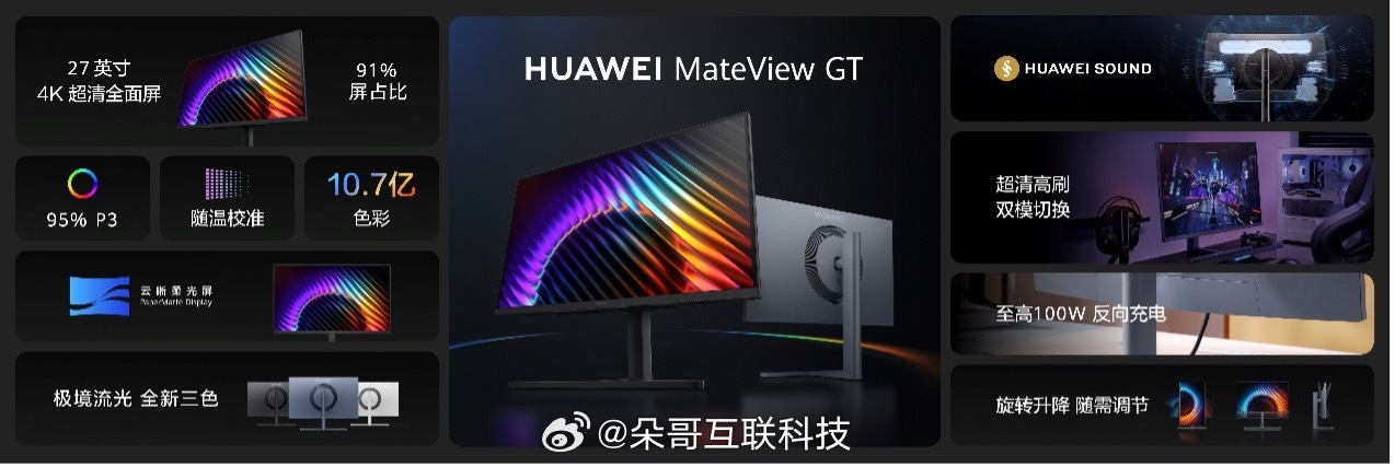 华为MateViewGT显示器发布27英寸4K柔光屏,抗眩光抗指纹满足办公游戏