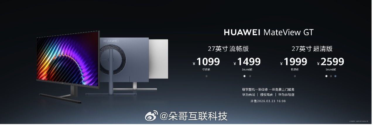 华为MateView GT显示器发布27英寸4K柔光屏,抗眩光抗指纹满足办公游戏多场景需求 1099起!